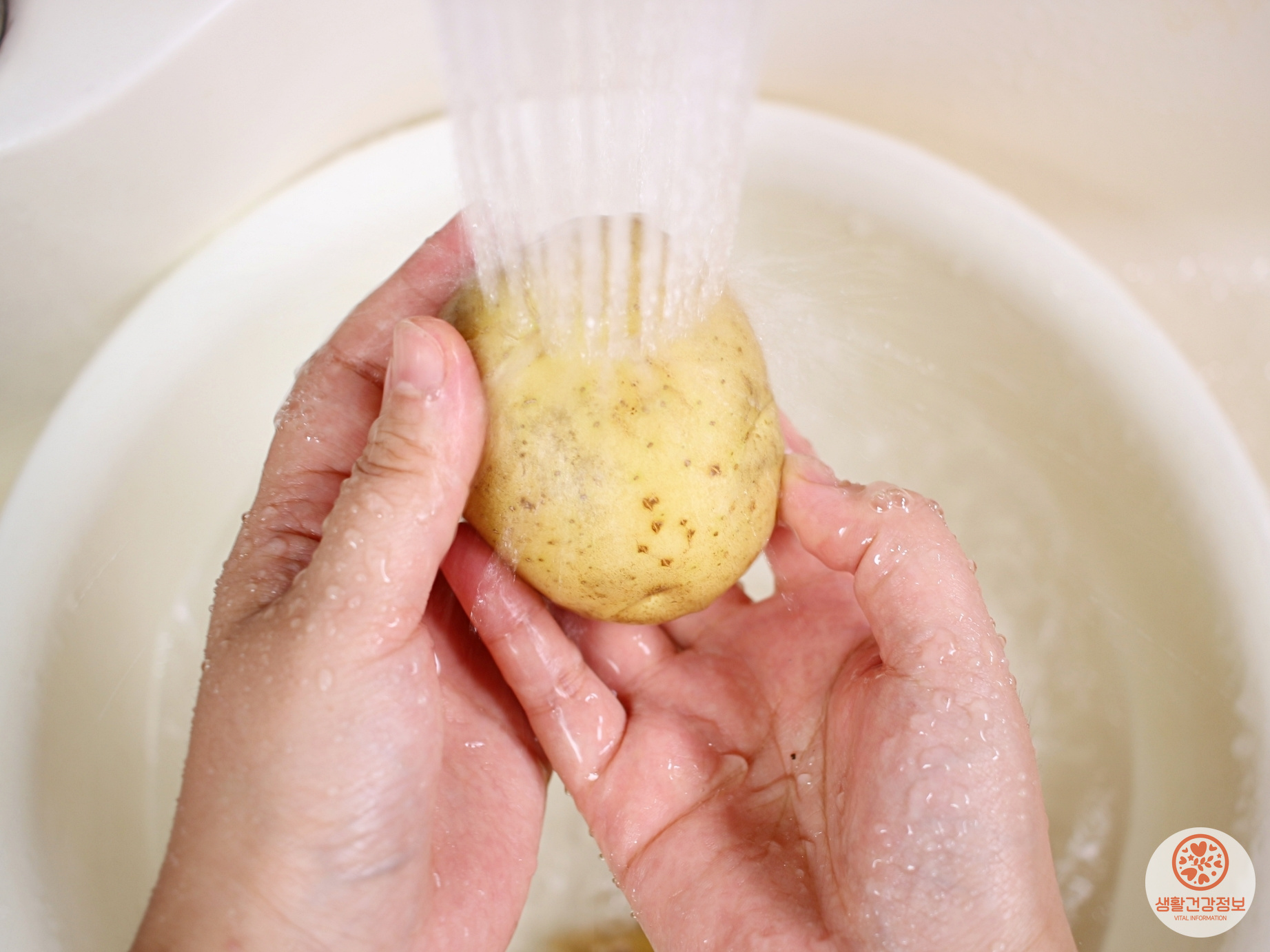 감자를 흐르는 물로 깨끗하게 씻어주세요.