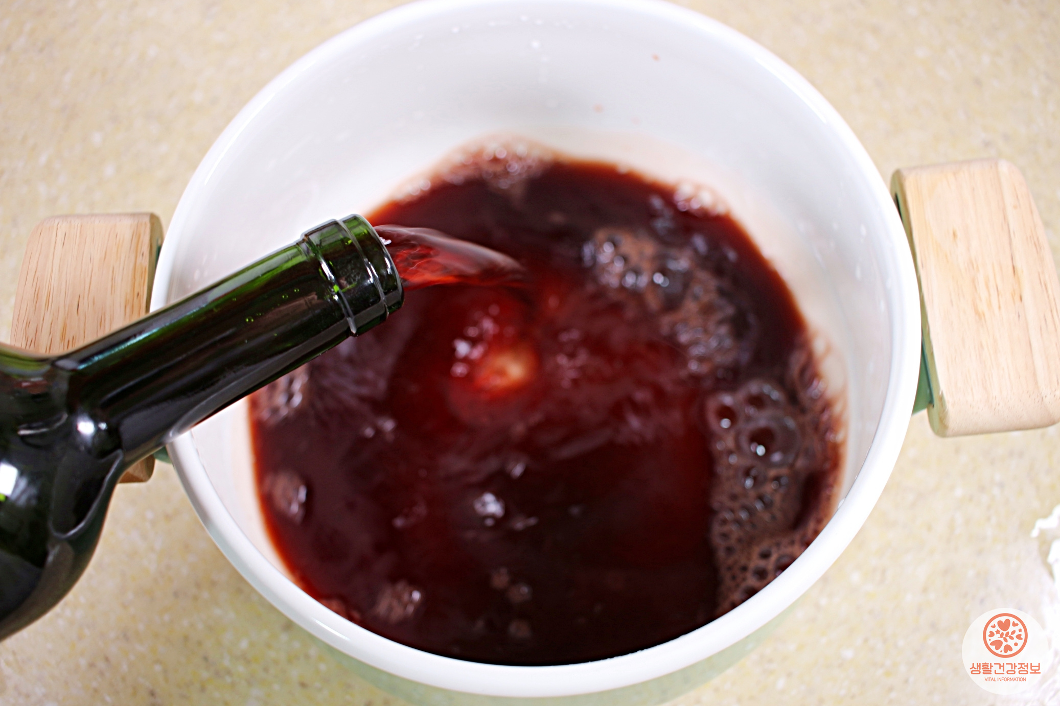 냄비에 와인(750ml) 한병 몽땅 부어주세요.