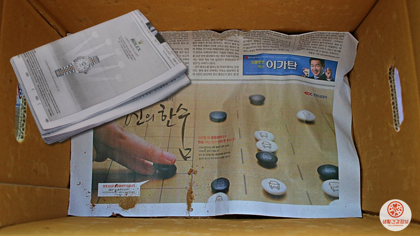 종이박스에 담고 신문지를 덮으면