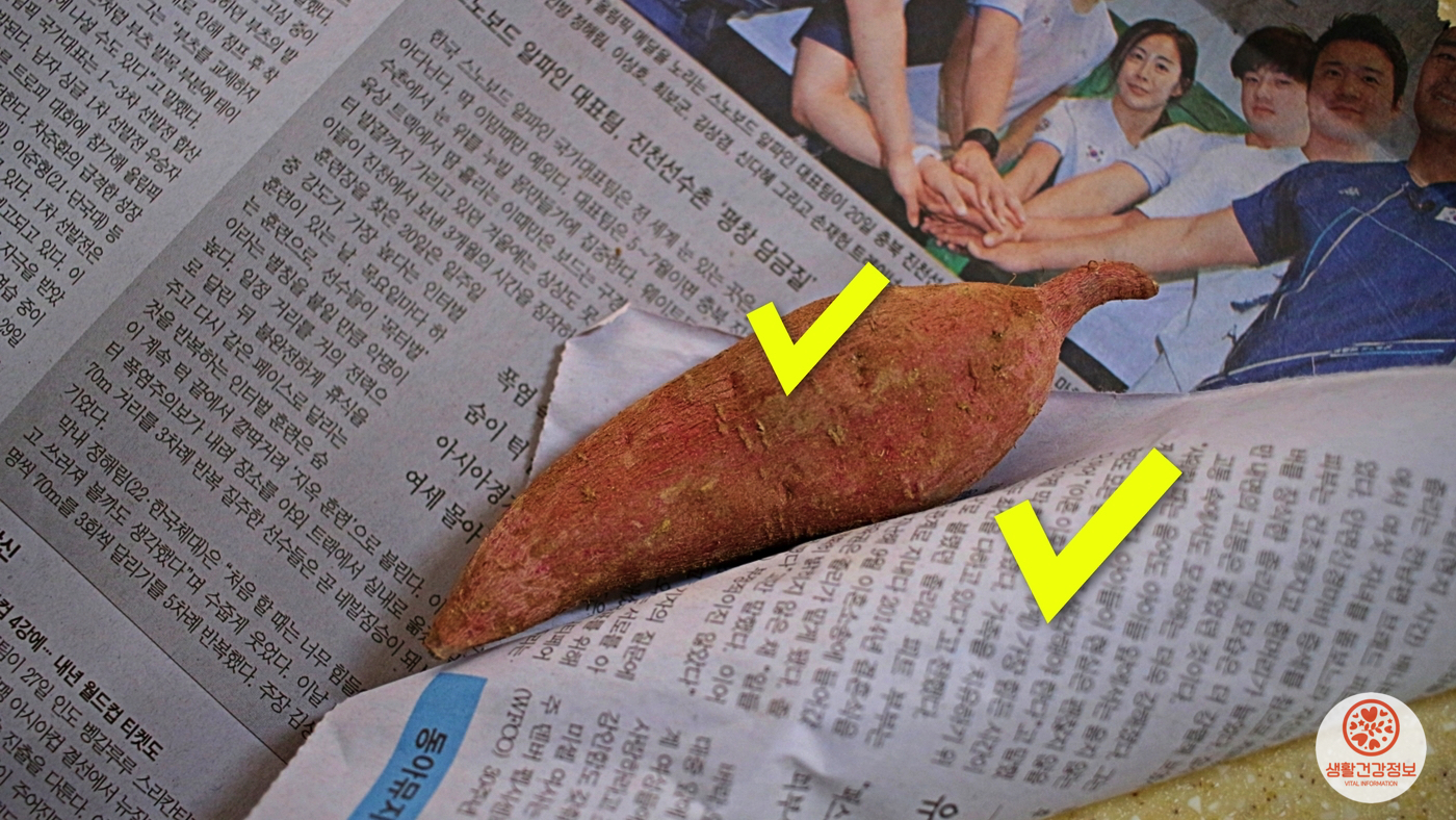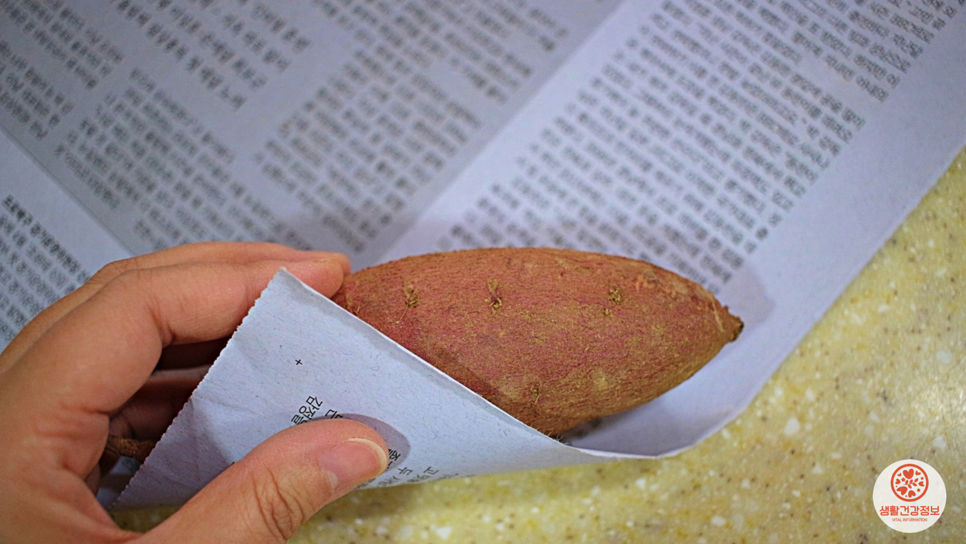 크기가 작은 고구마는 신문지 한 장으로