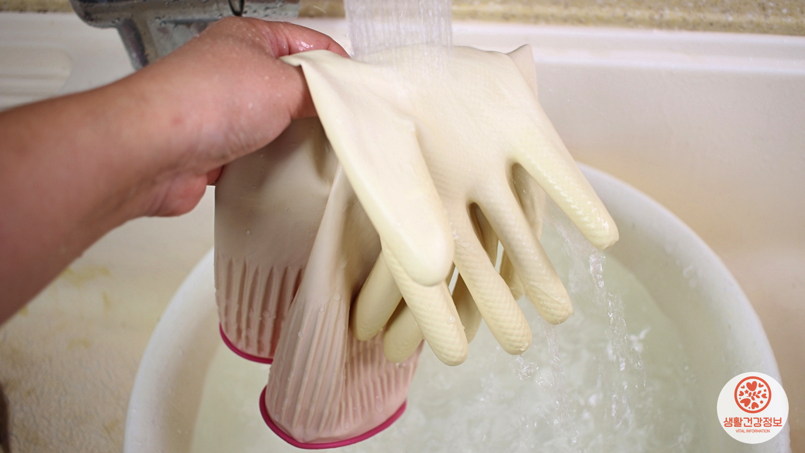 고무장갑을 흐르는 물로 깨끗하게 헹궈주시고요.