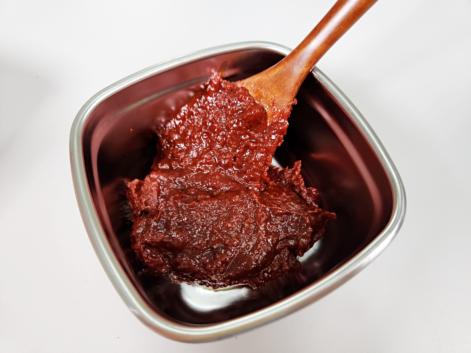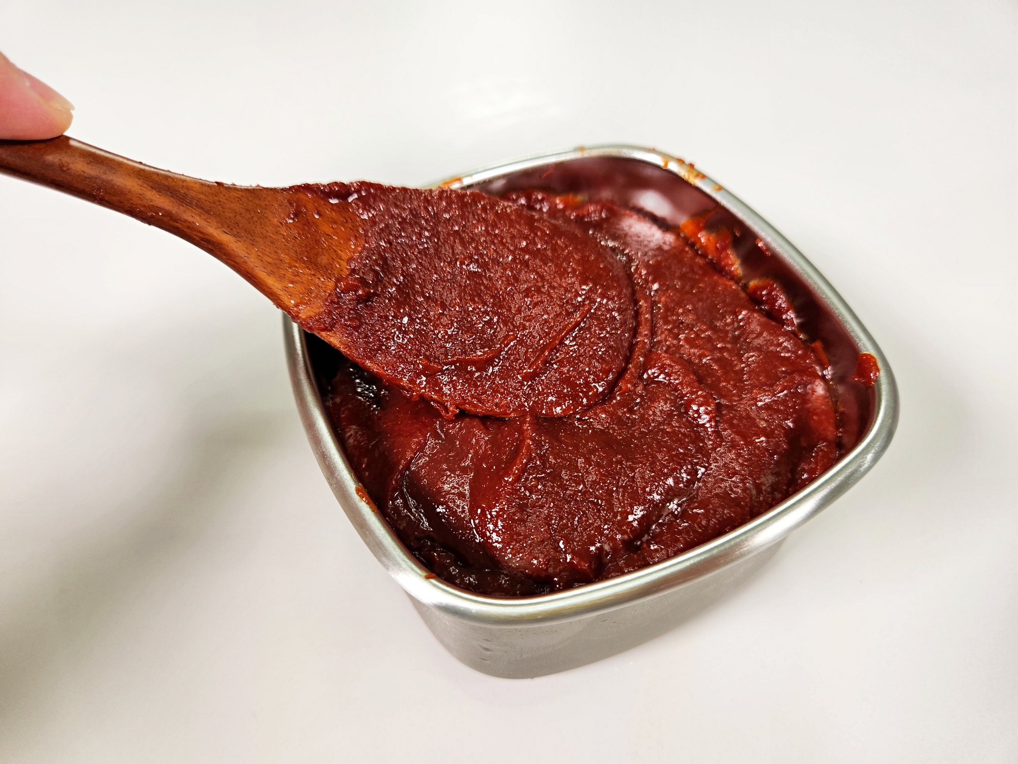 고추장을 덜어낼 때는 물기가 없는 숟가락이나 주걱을 사용해요.