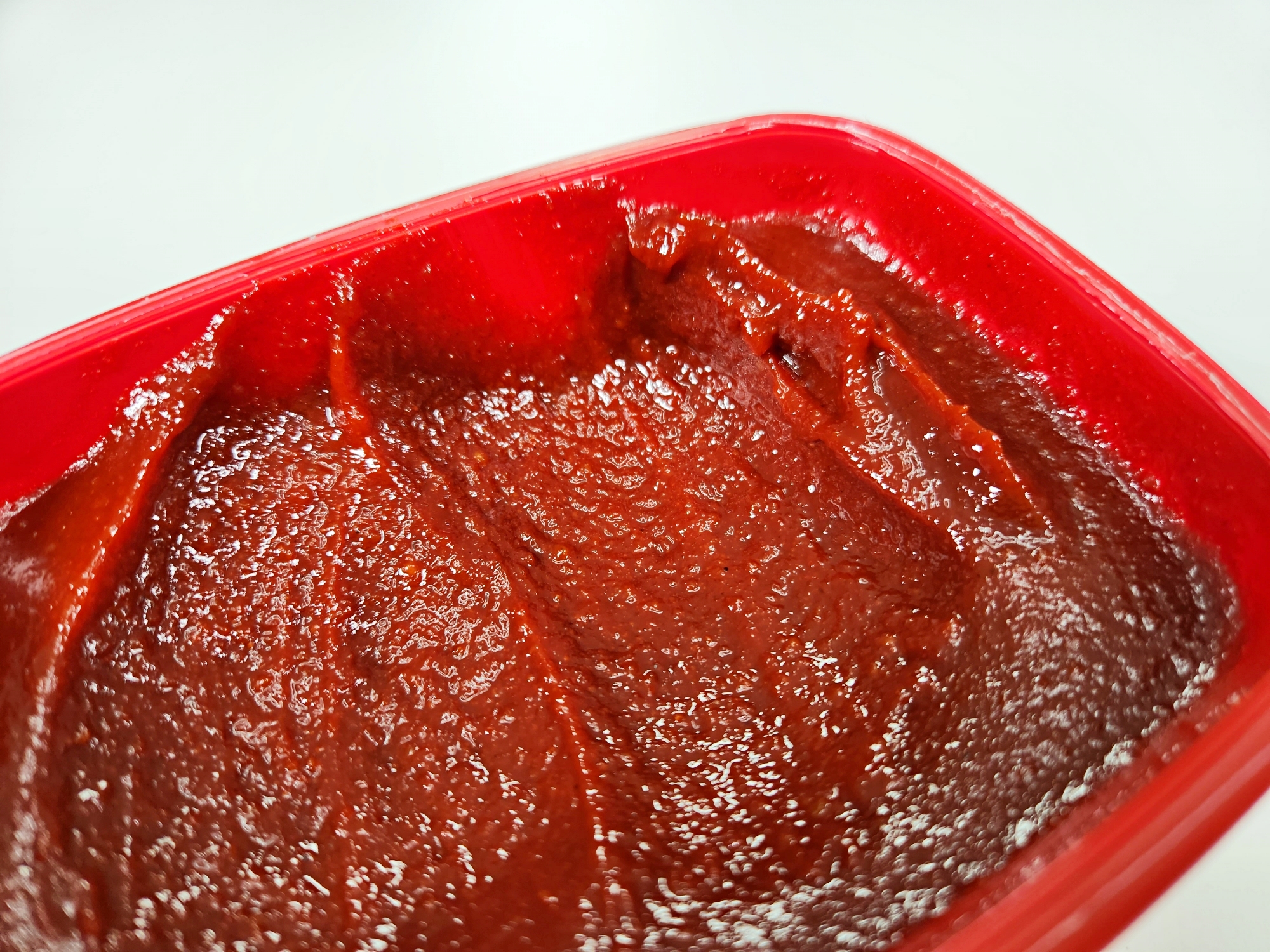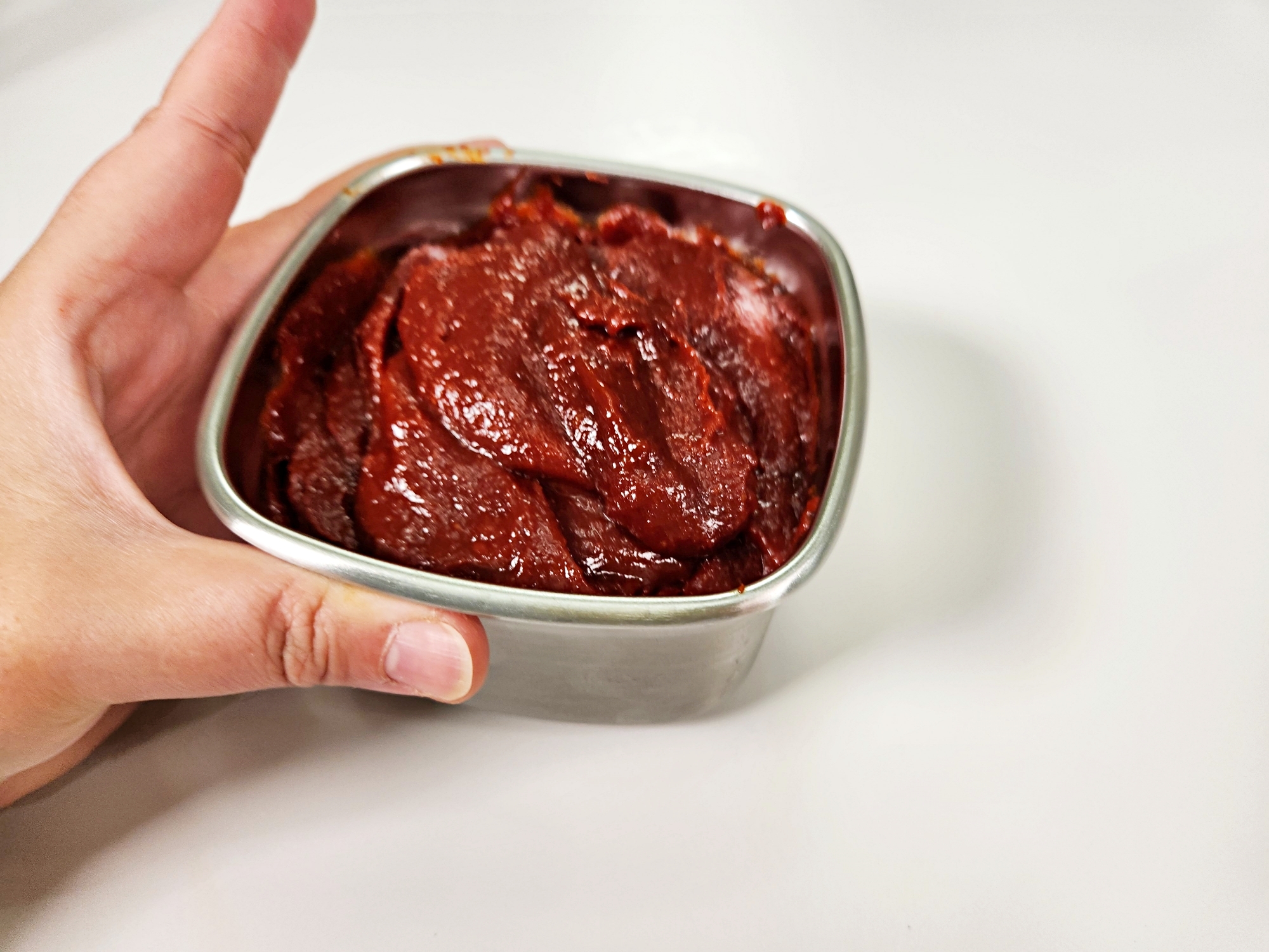 용기를 톡톡 쳐서 고추장 사이의 공기를 최대한 빼주세요.