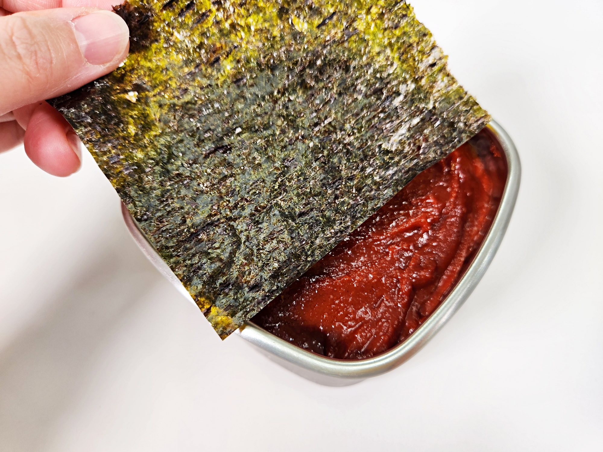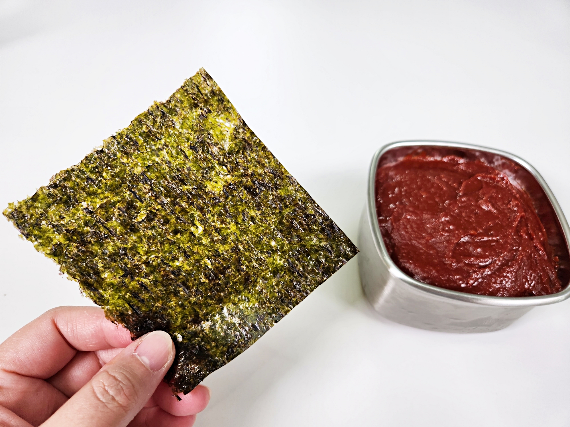 김 한장 얹는 것만으로도 고추장을 훨씬 위생적으로