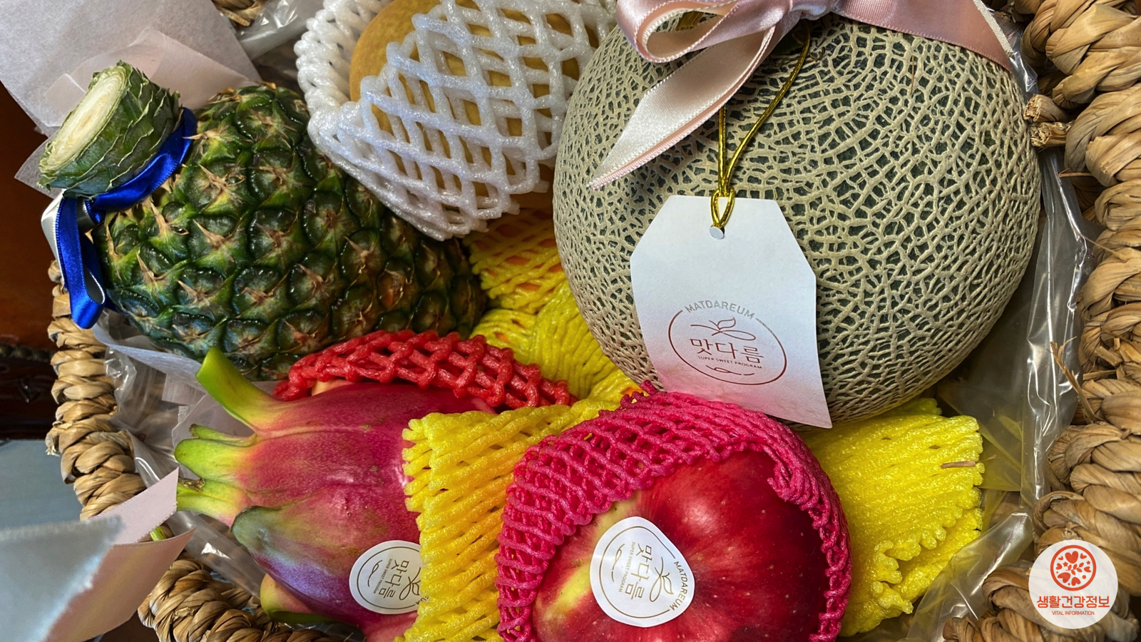 과일을 예쁘게 감싸고 있는 과일포장망.