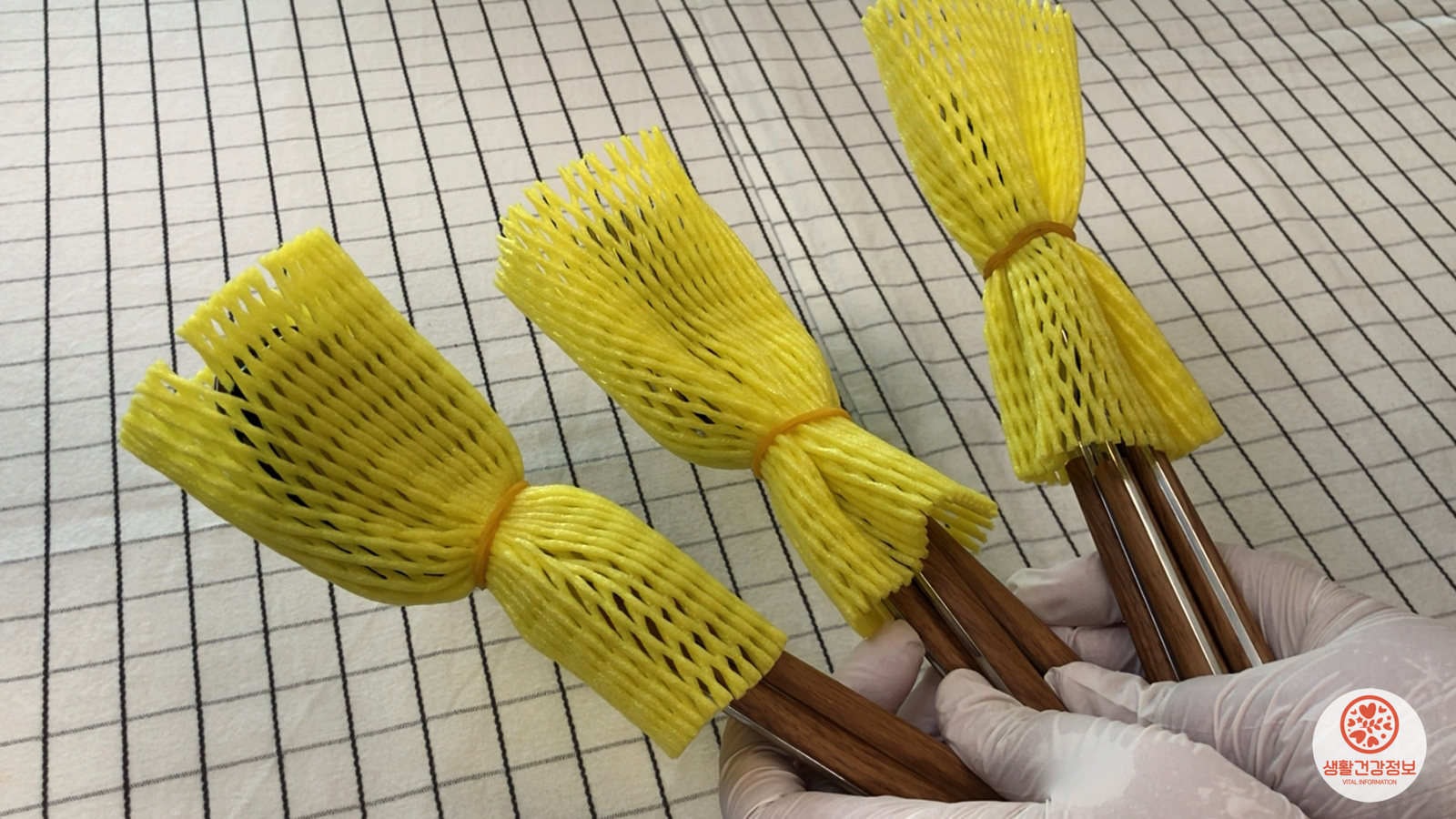 과일포장망을 잘라서 그릇 사이에 끼우면