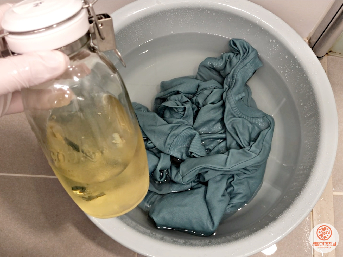 헹굴 때 식초를 넣어서 헹구는 거예요.