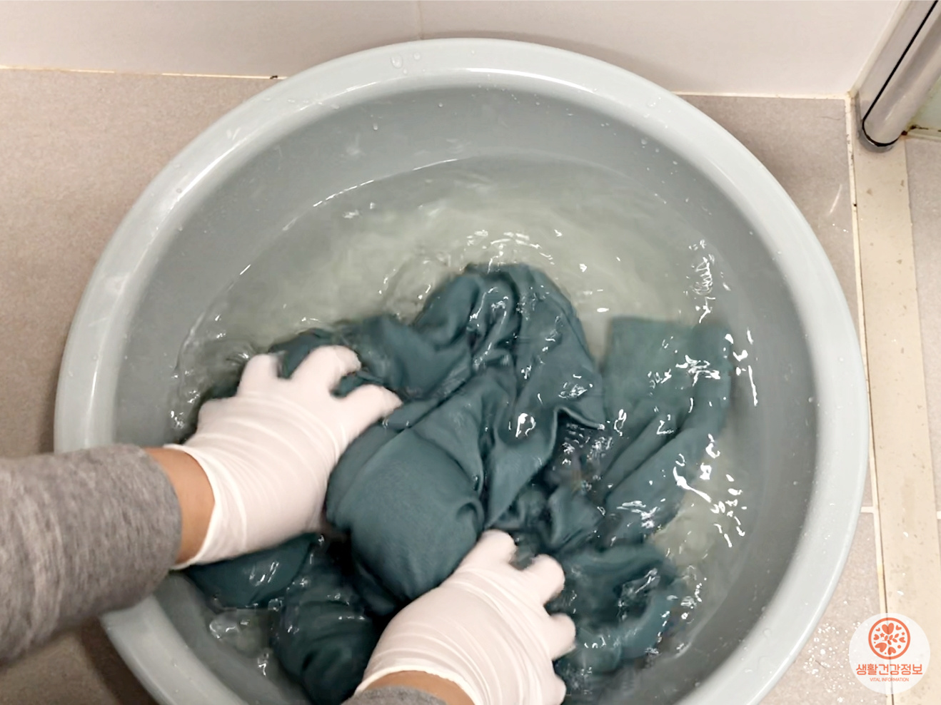 따뜻한 물에 빨랫감을 담그고