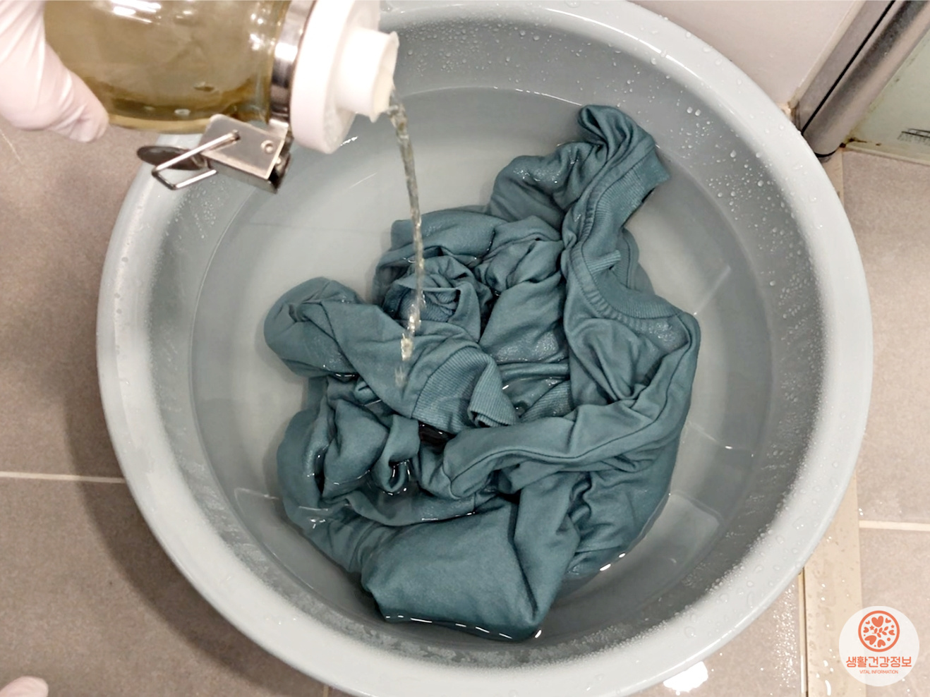 따뜻한 물에 빨랫감을 담그고