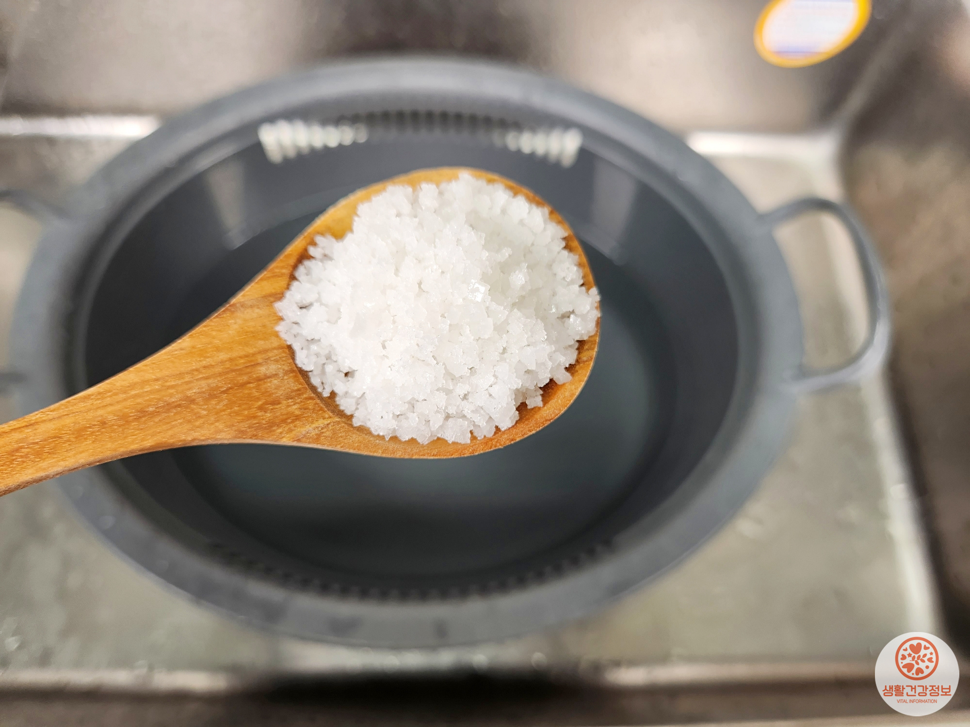 물3L에 굵은 소금 넉넉하게 한숟가락 넣어서