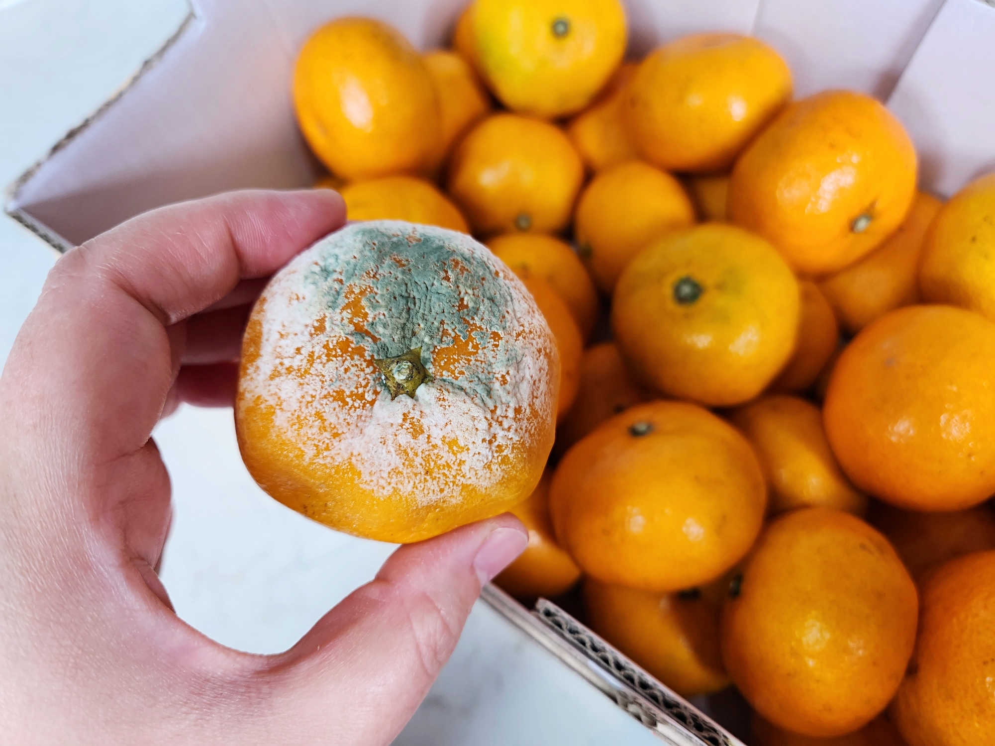 무르거나 곰팡이가 핀 귤은 눈에 쉽게 띄어서