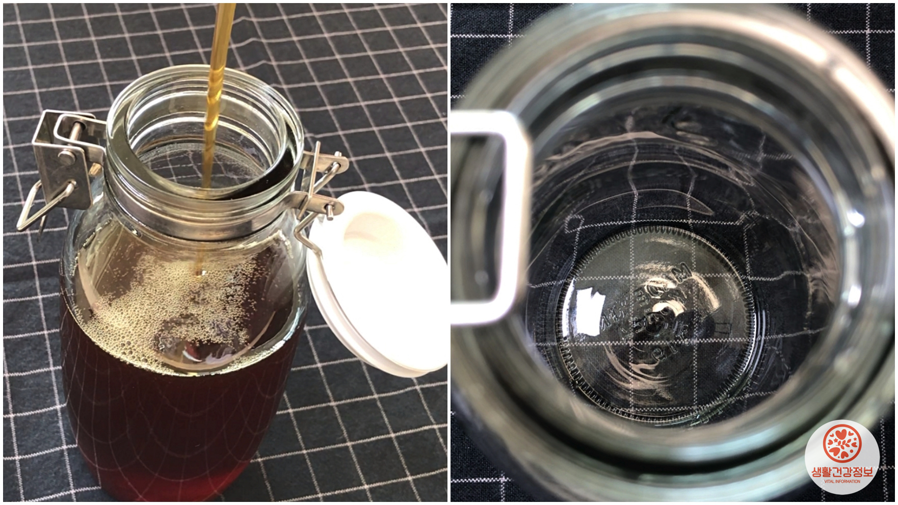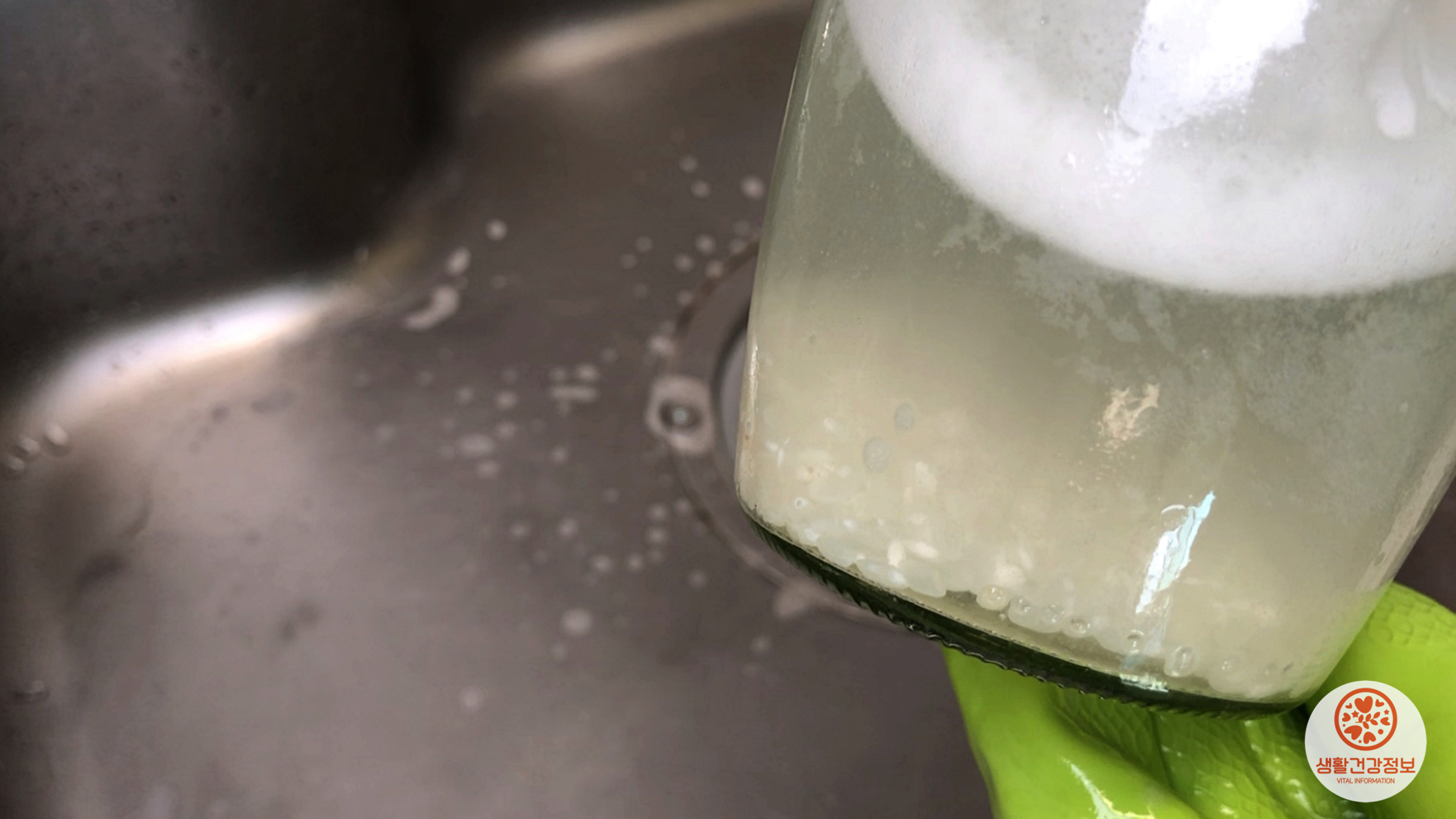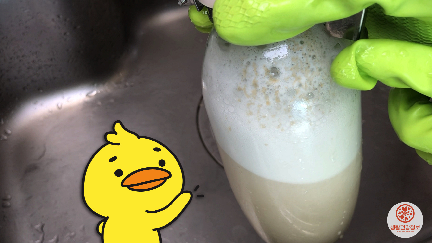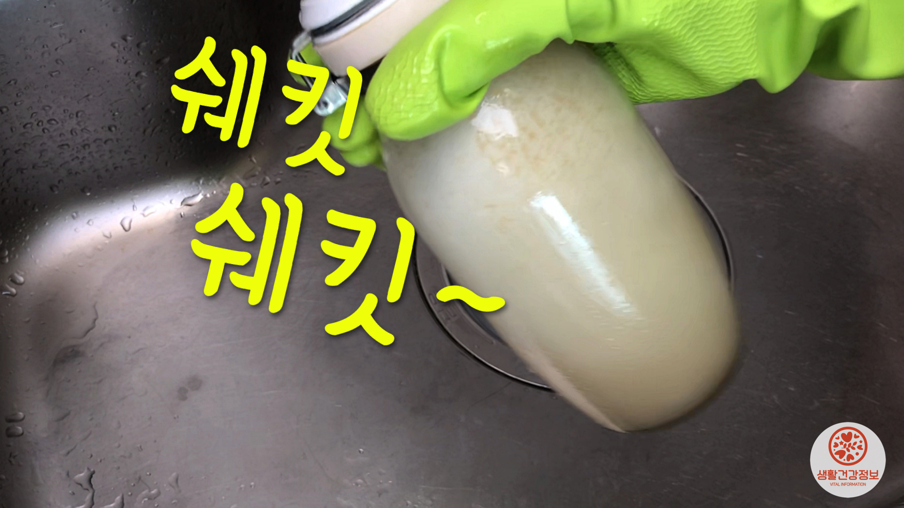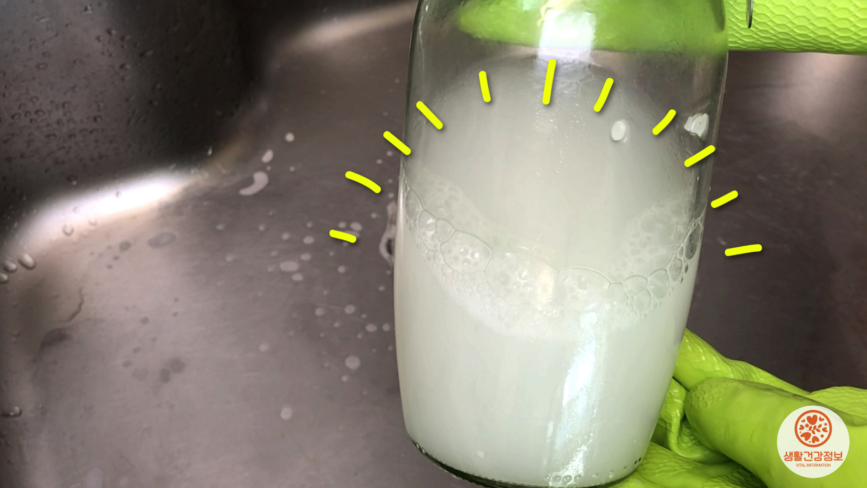 기름병 속 물이 쌀뜨물처럼 변했네요 ㅎㅎ