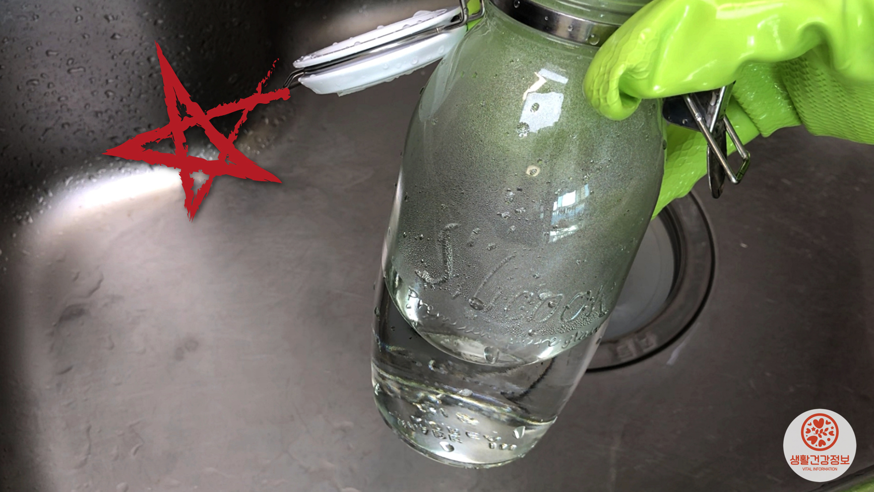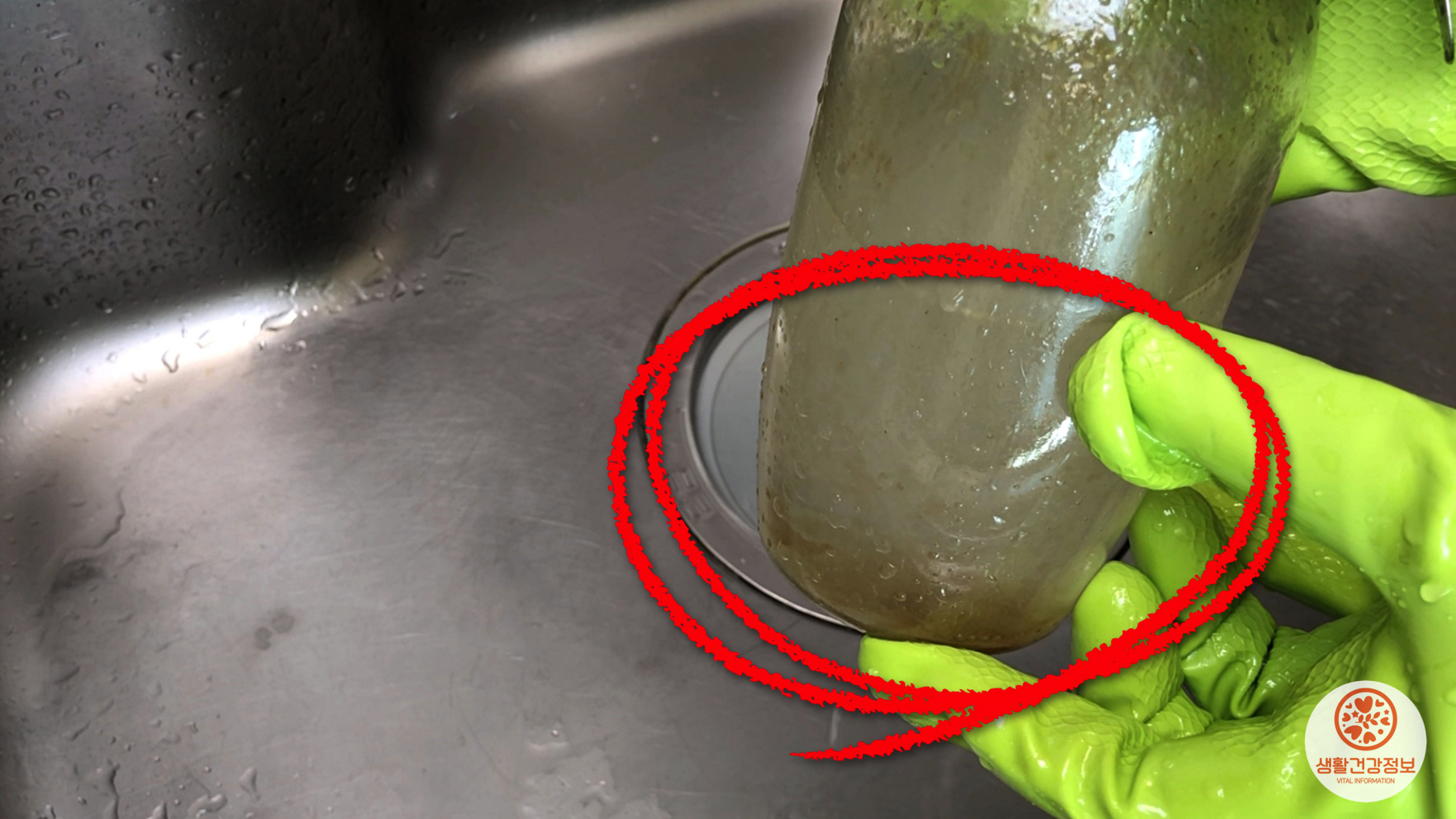 기름병 속 물이 쌀뜨물처럼 변했네요 ㅎㅎ