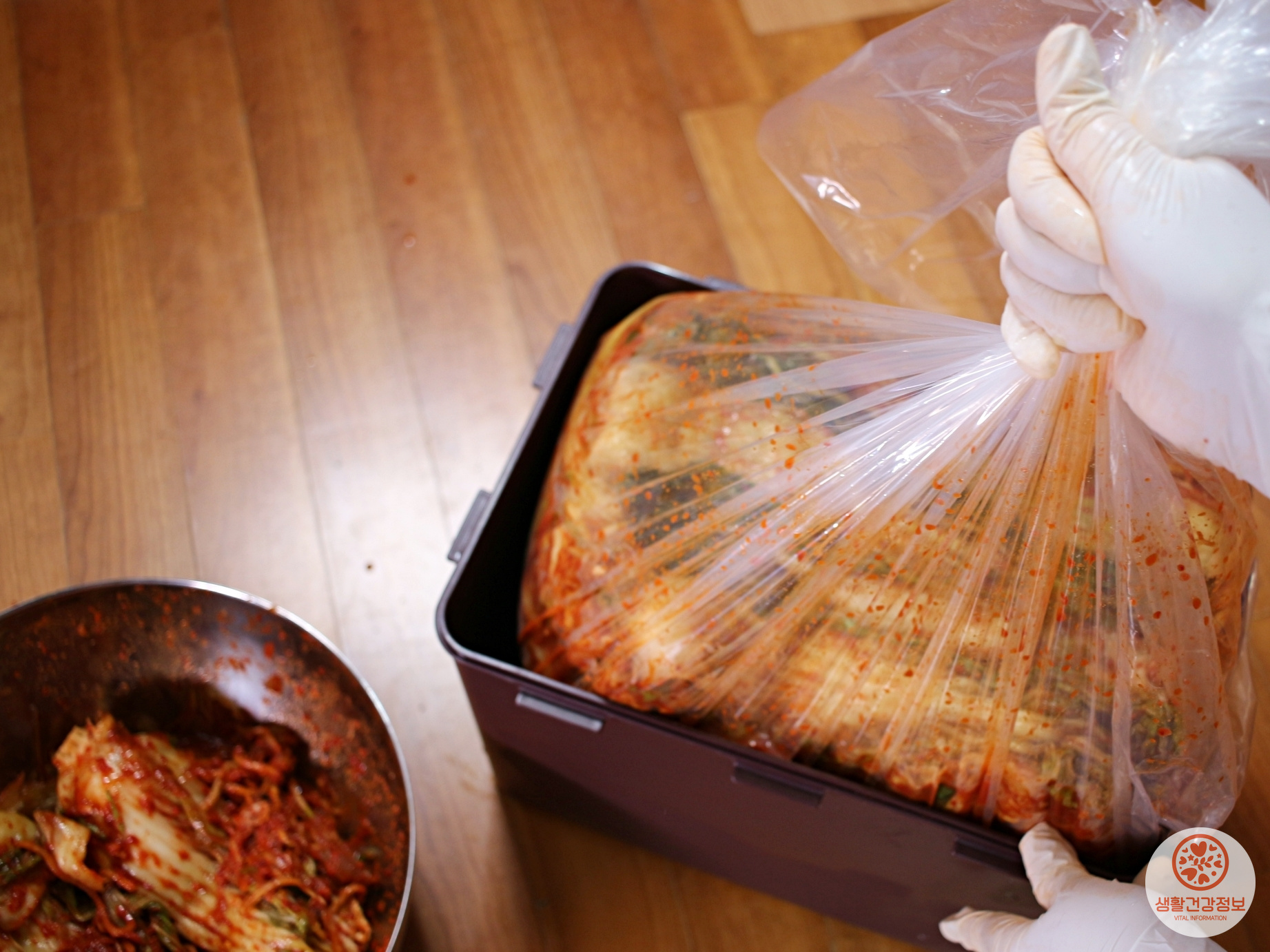 김치통에 김치를 담을 때 그냥 넣지 않고