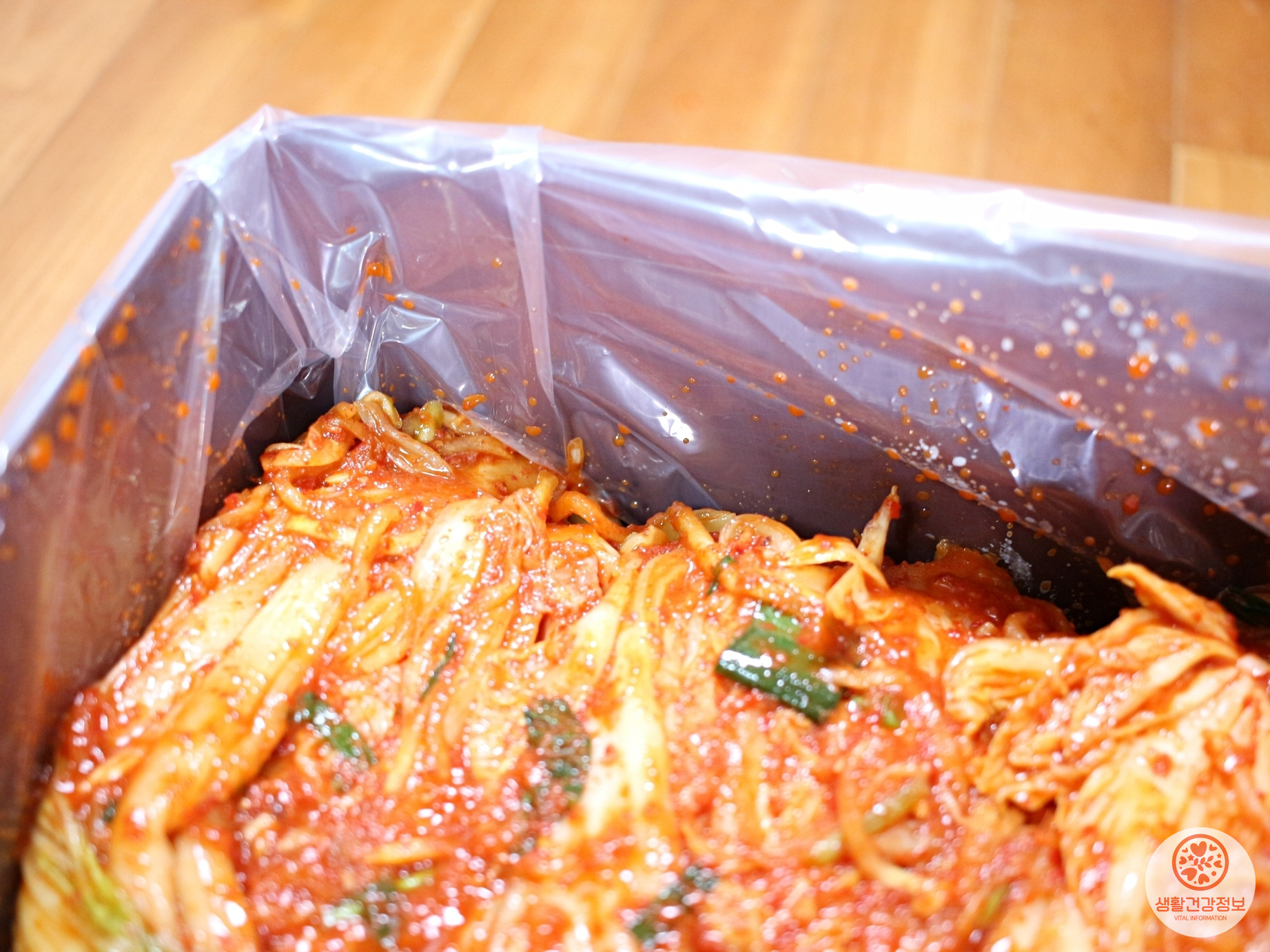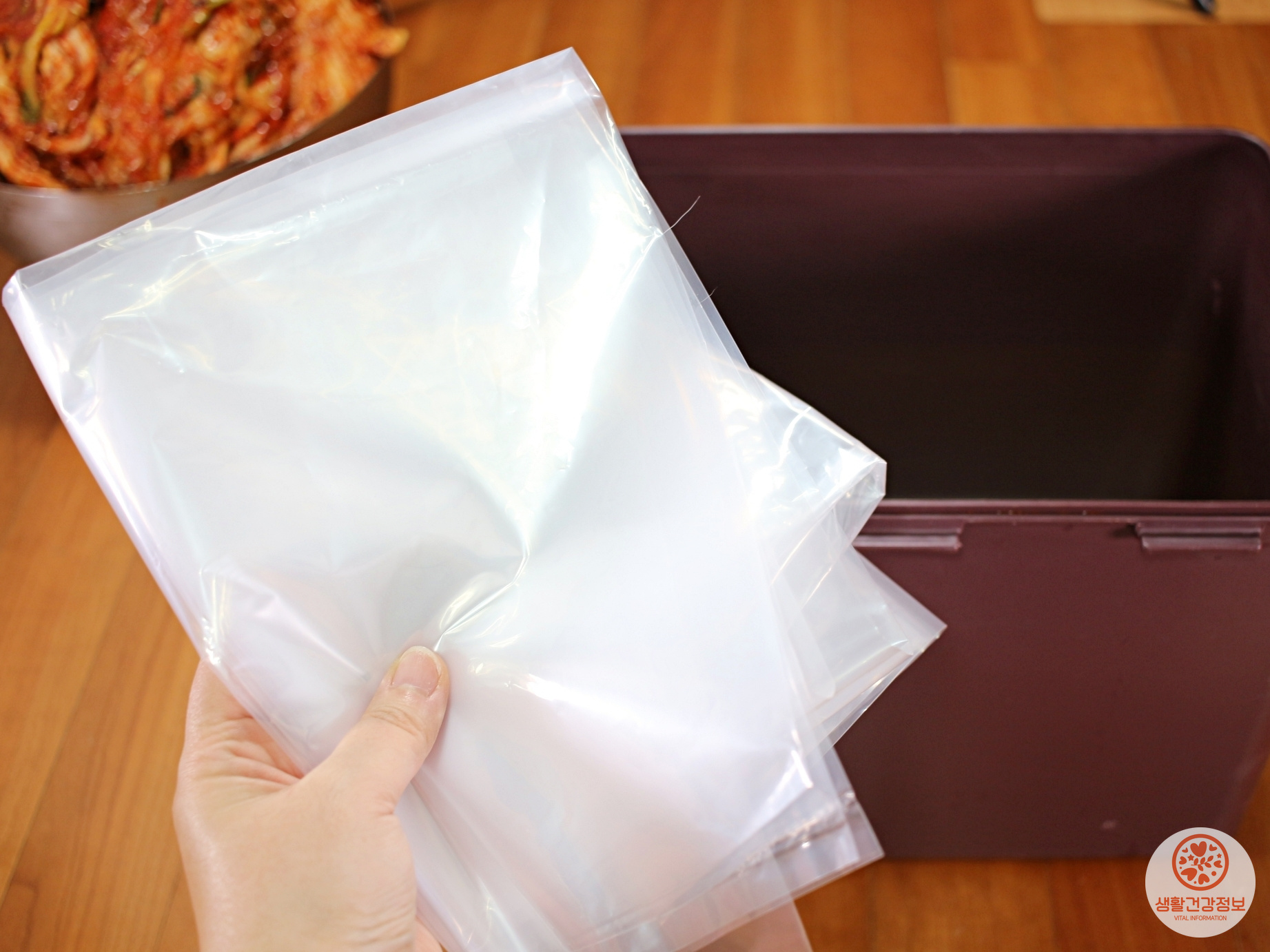 식품용으로 나온 비닐을 김치통에 끼워서