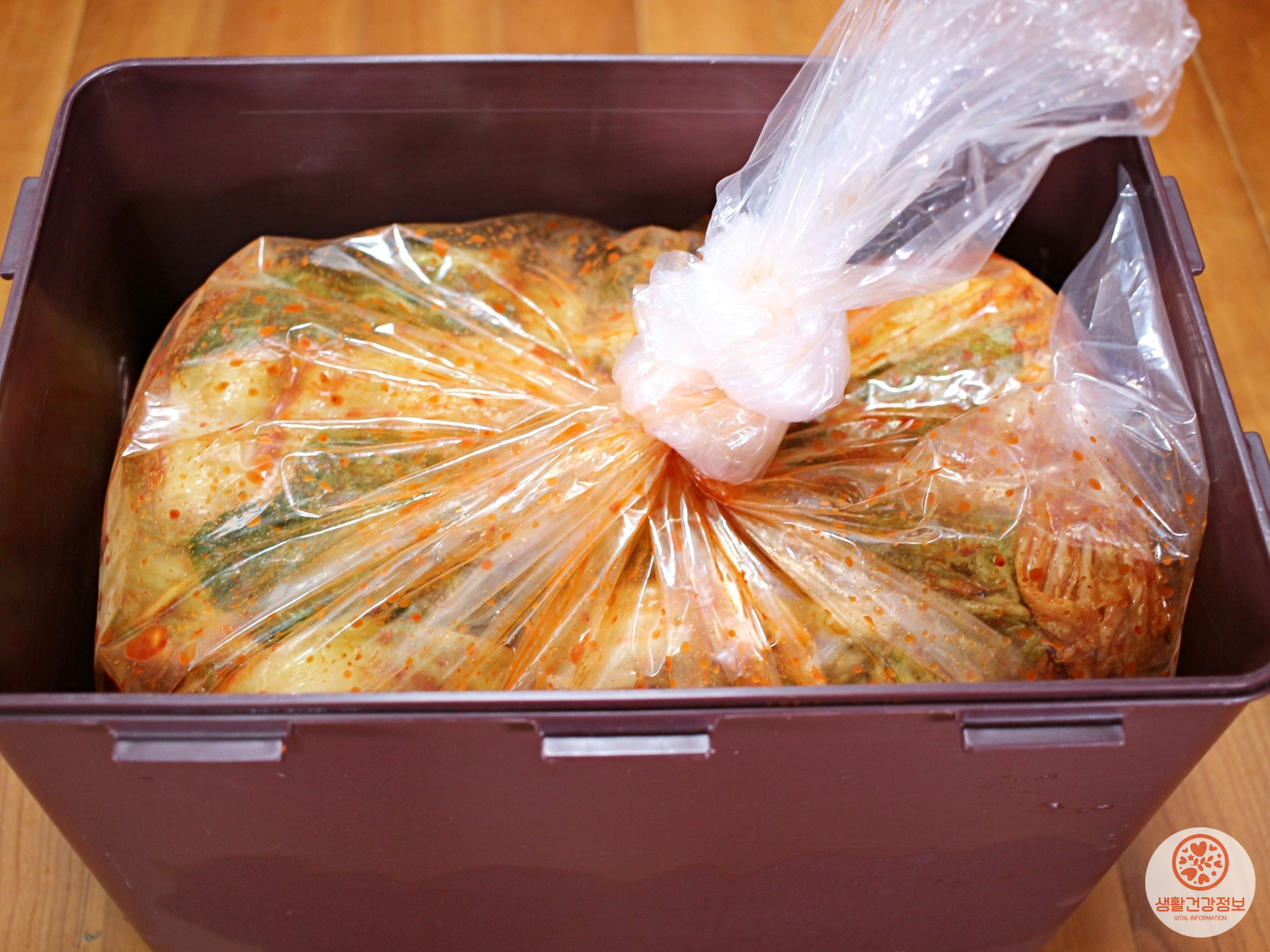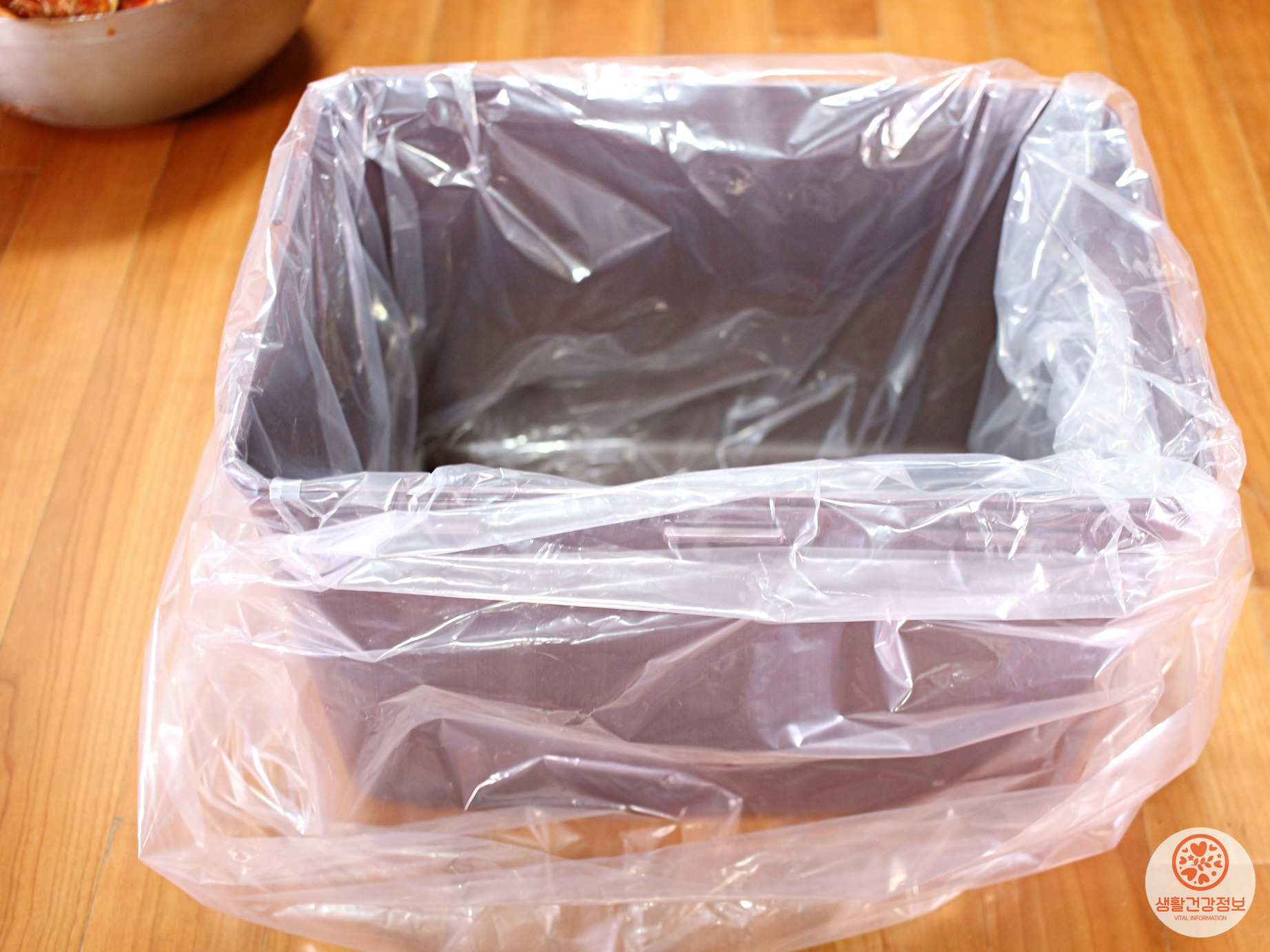 식품용으로 나온 비닐을 김치통에 끼워서