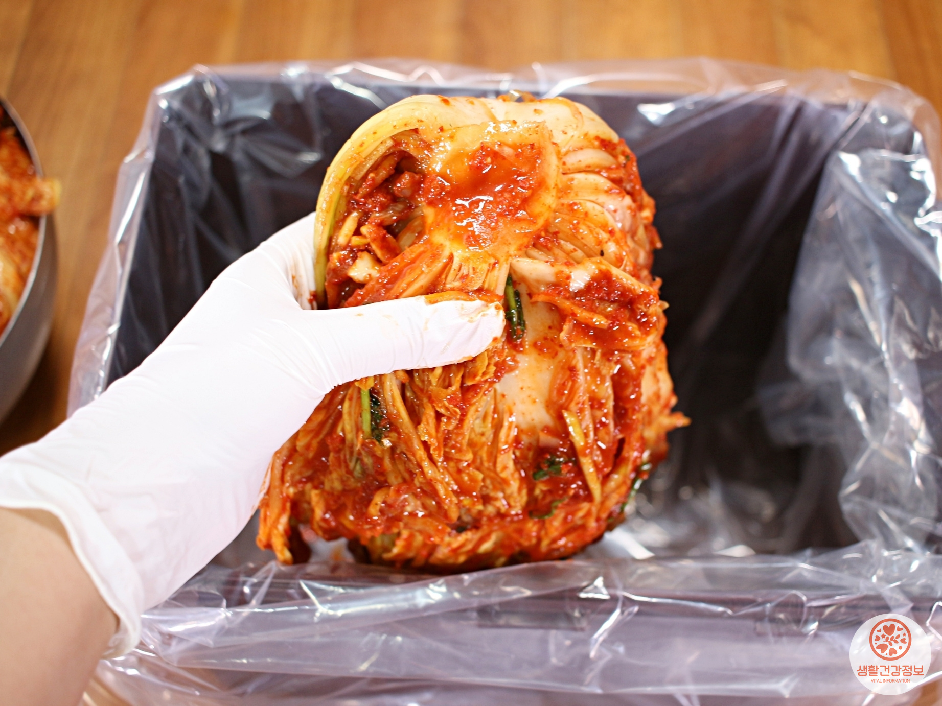 김치통에 김치를 담을 때 그냥 넣지 않고