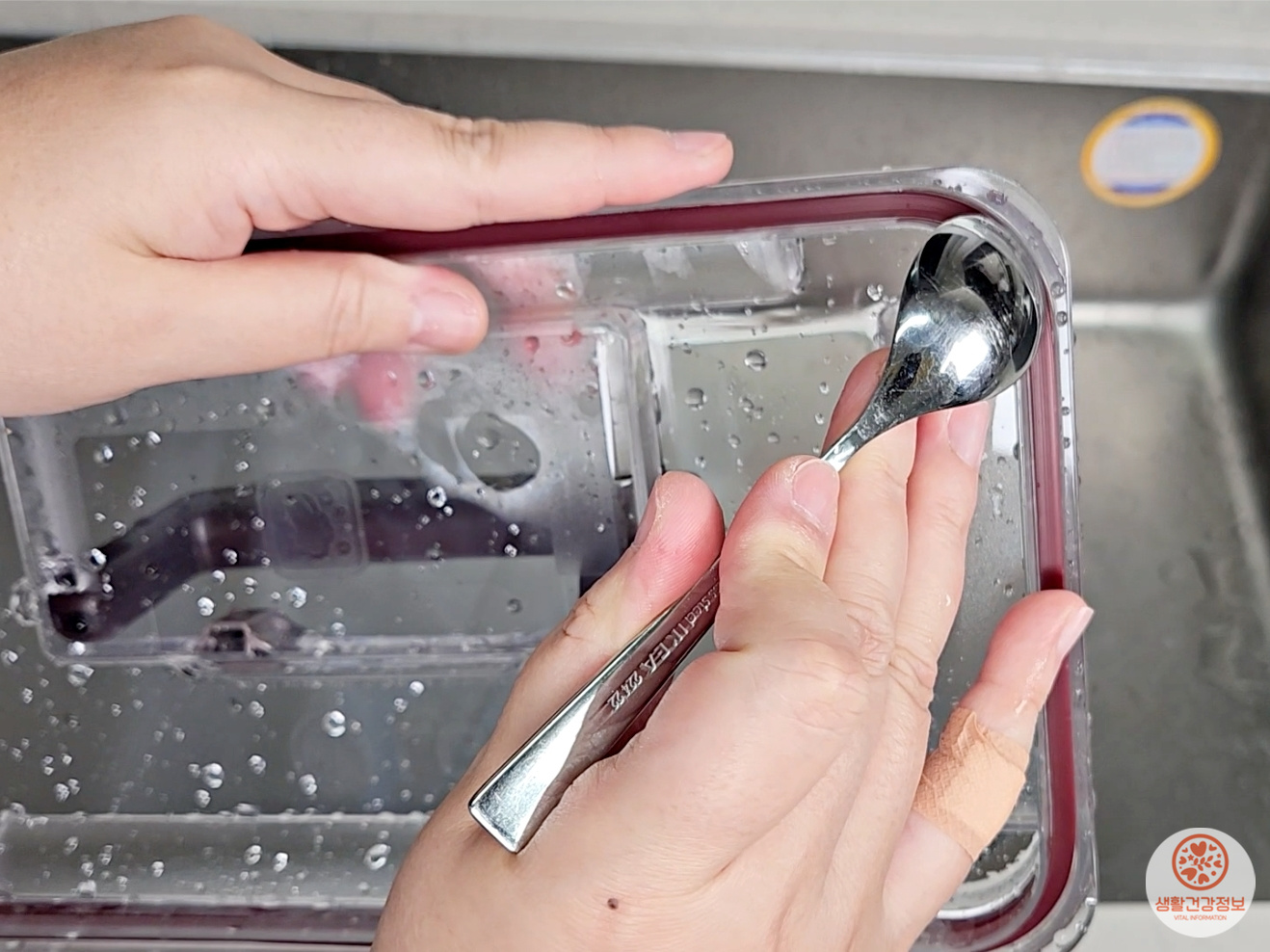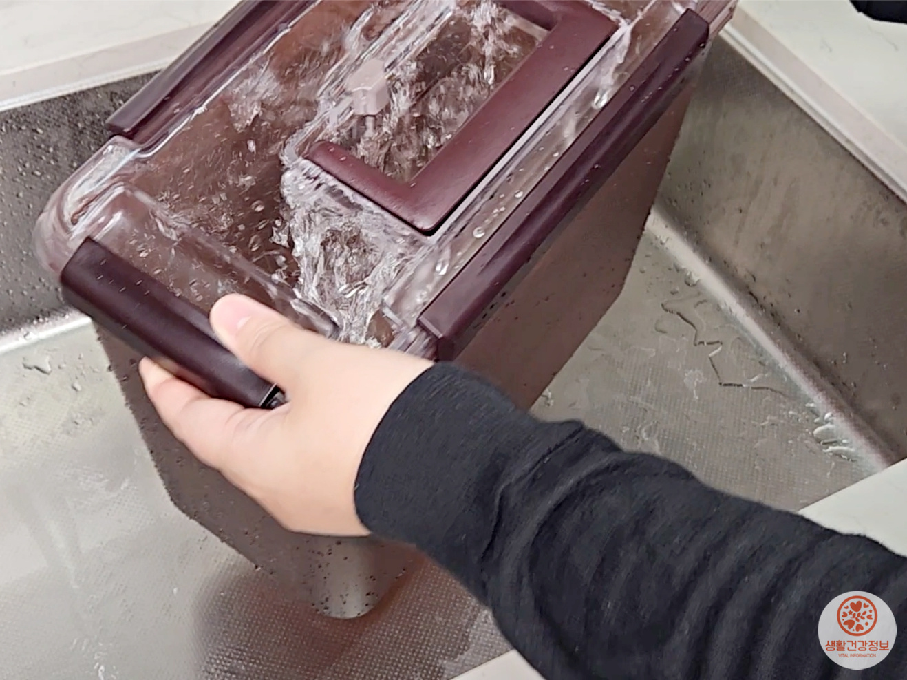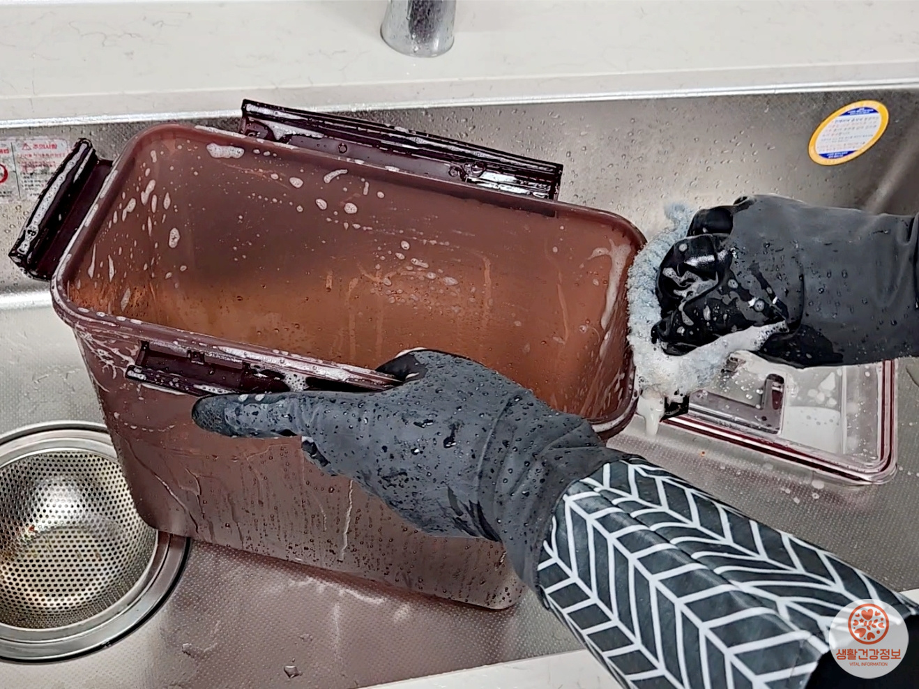 김치통을 비우고 주방세제로 닦는건 기본이죠.