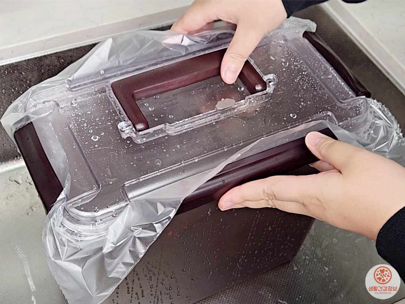 뚜껑 안쪽에 비닐 한겹 덧대서