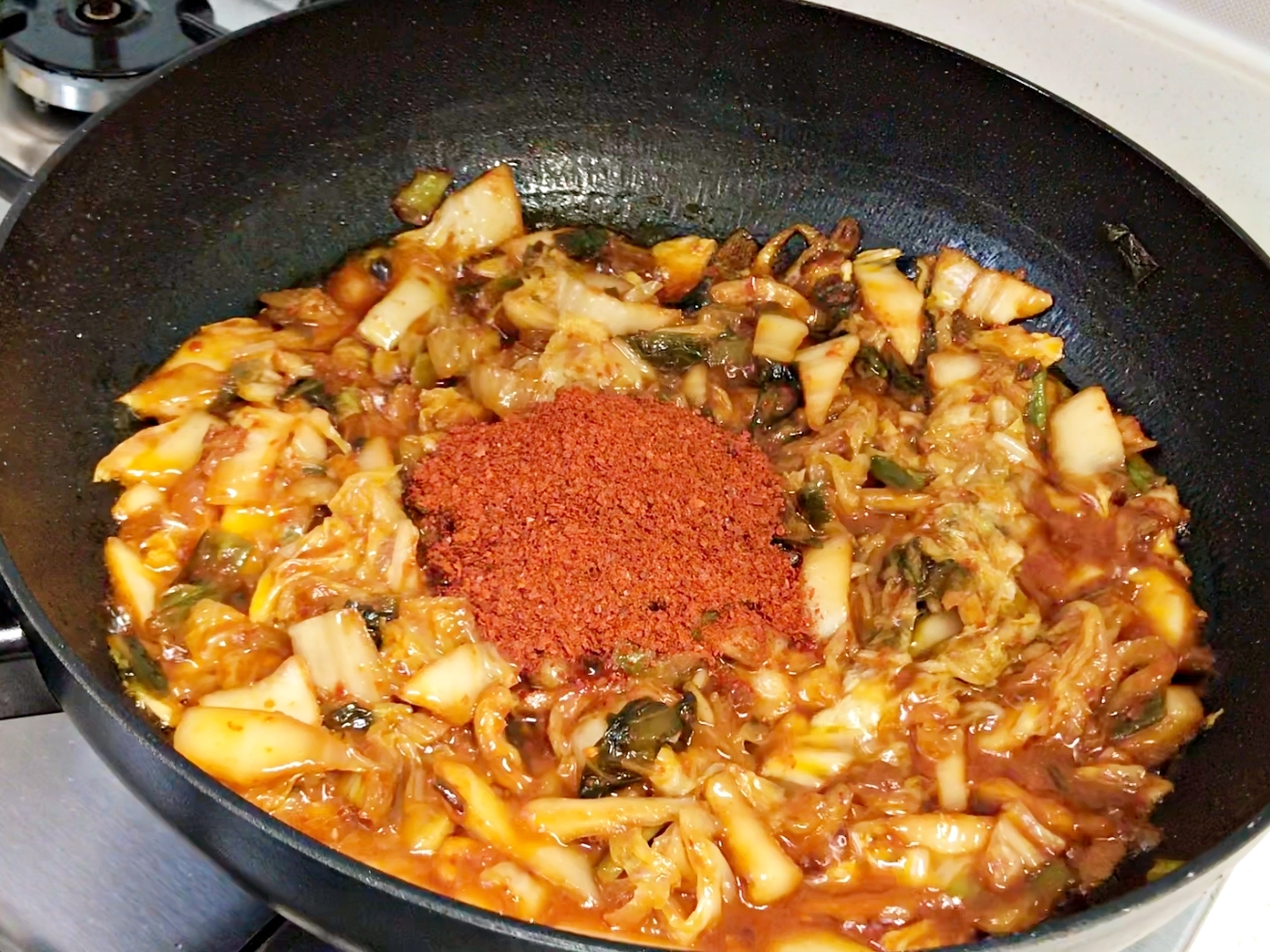 저는 김치가 워낙 폭 익어서 2큰술 넣었어요.