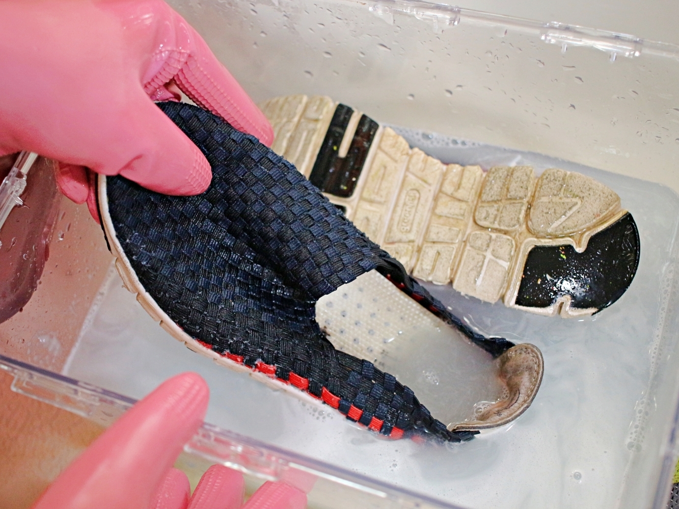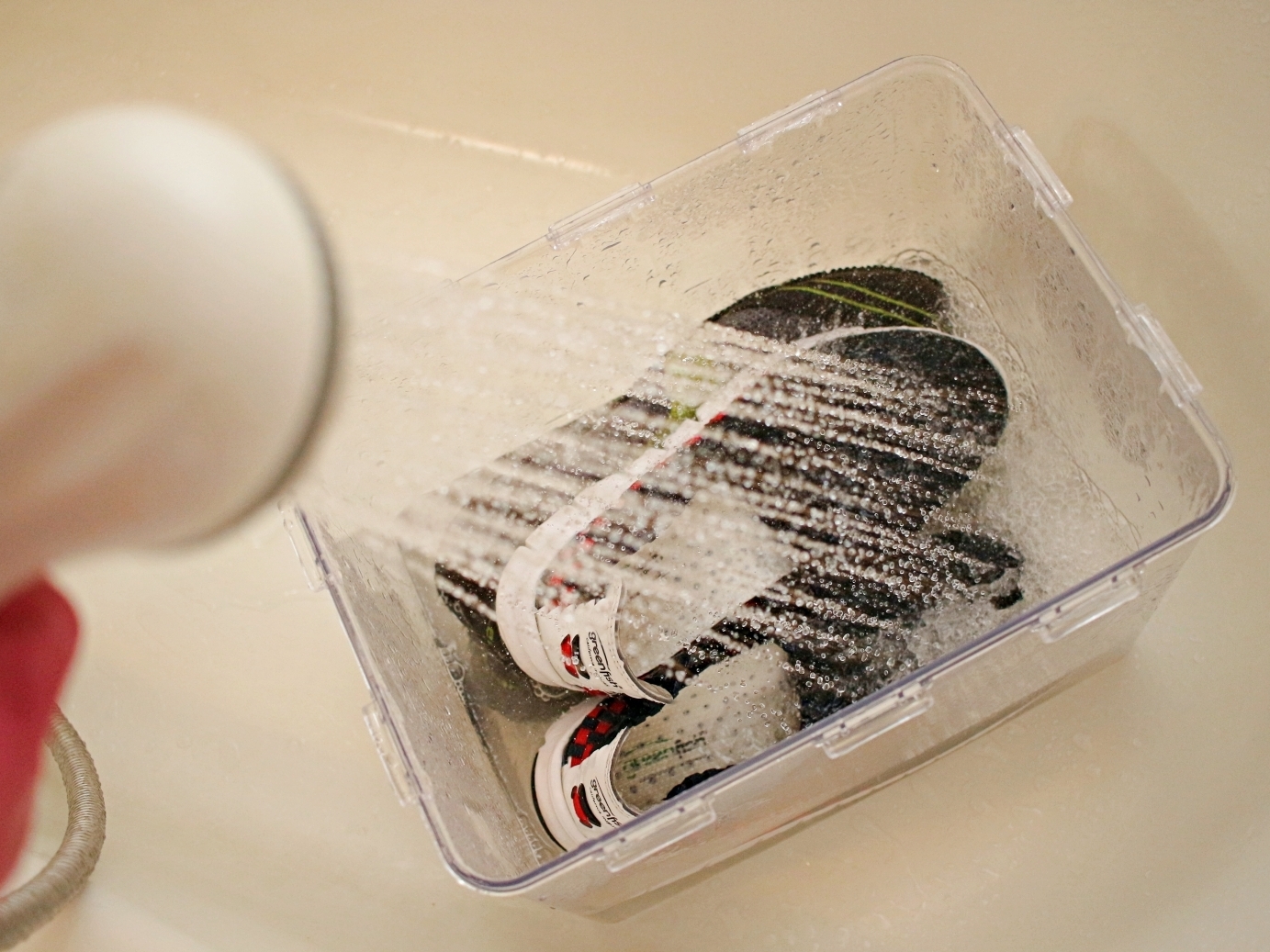 운동화에 세제물이 충분히 스며들도록 흔들고