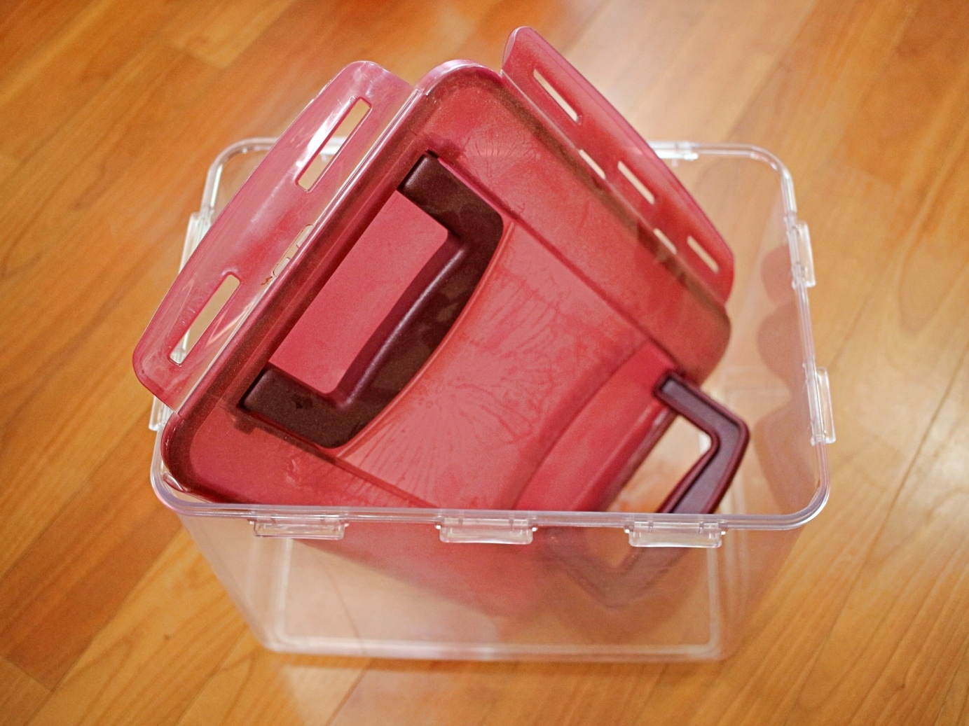 우선 김치통에 쌓인 먼지를 깨끗하게 씻어내요.
