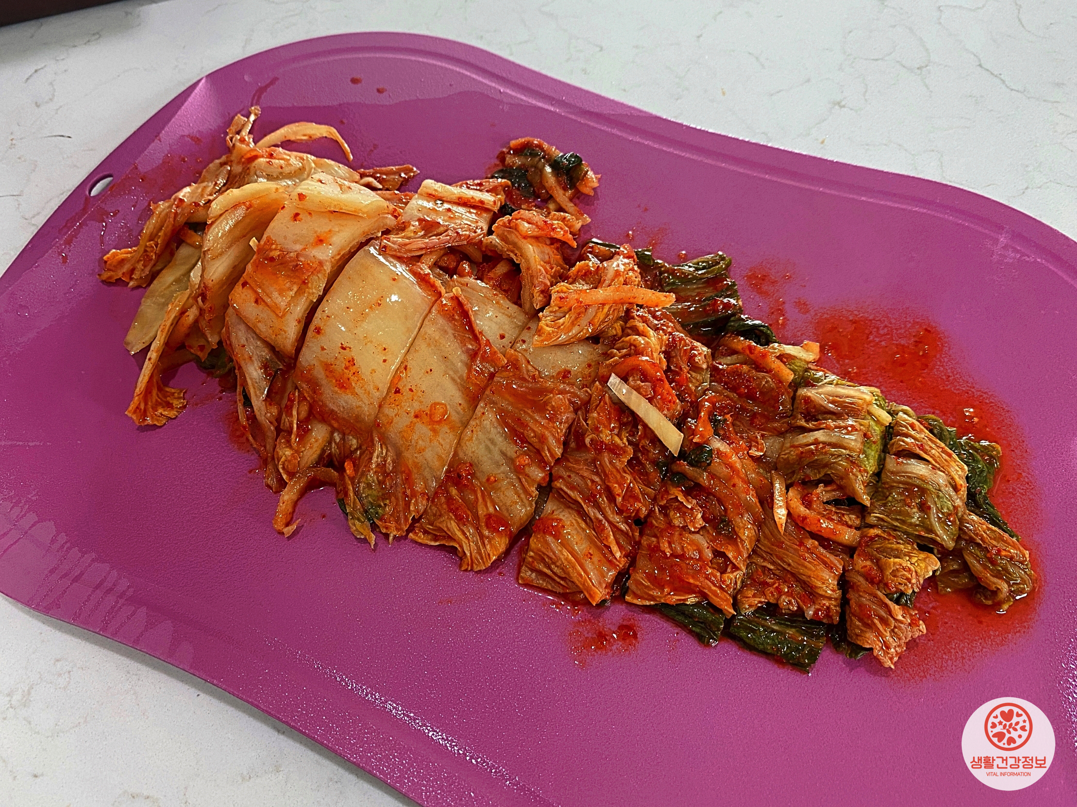 먹기 좋은 썬 김치를 밀폐용기에 담고,