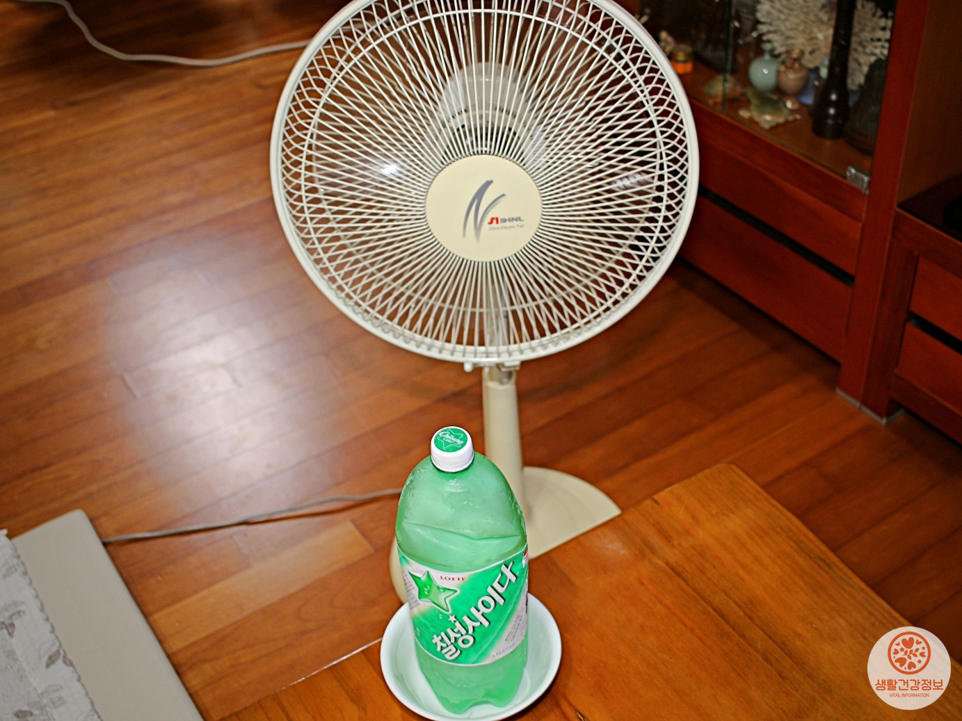 페트병쪽으로 선풍기 바람을 쐬어주면