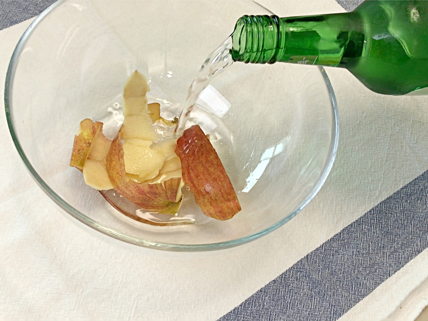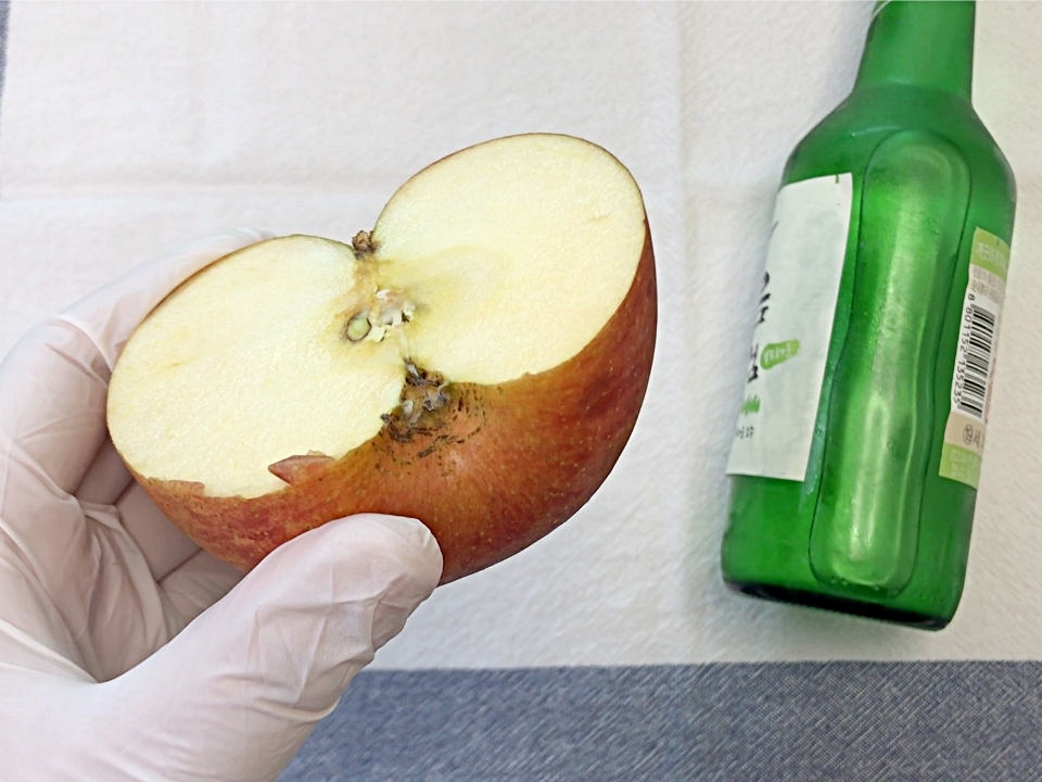 사과 껍질에 소주를 부어주세요.
