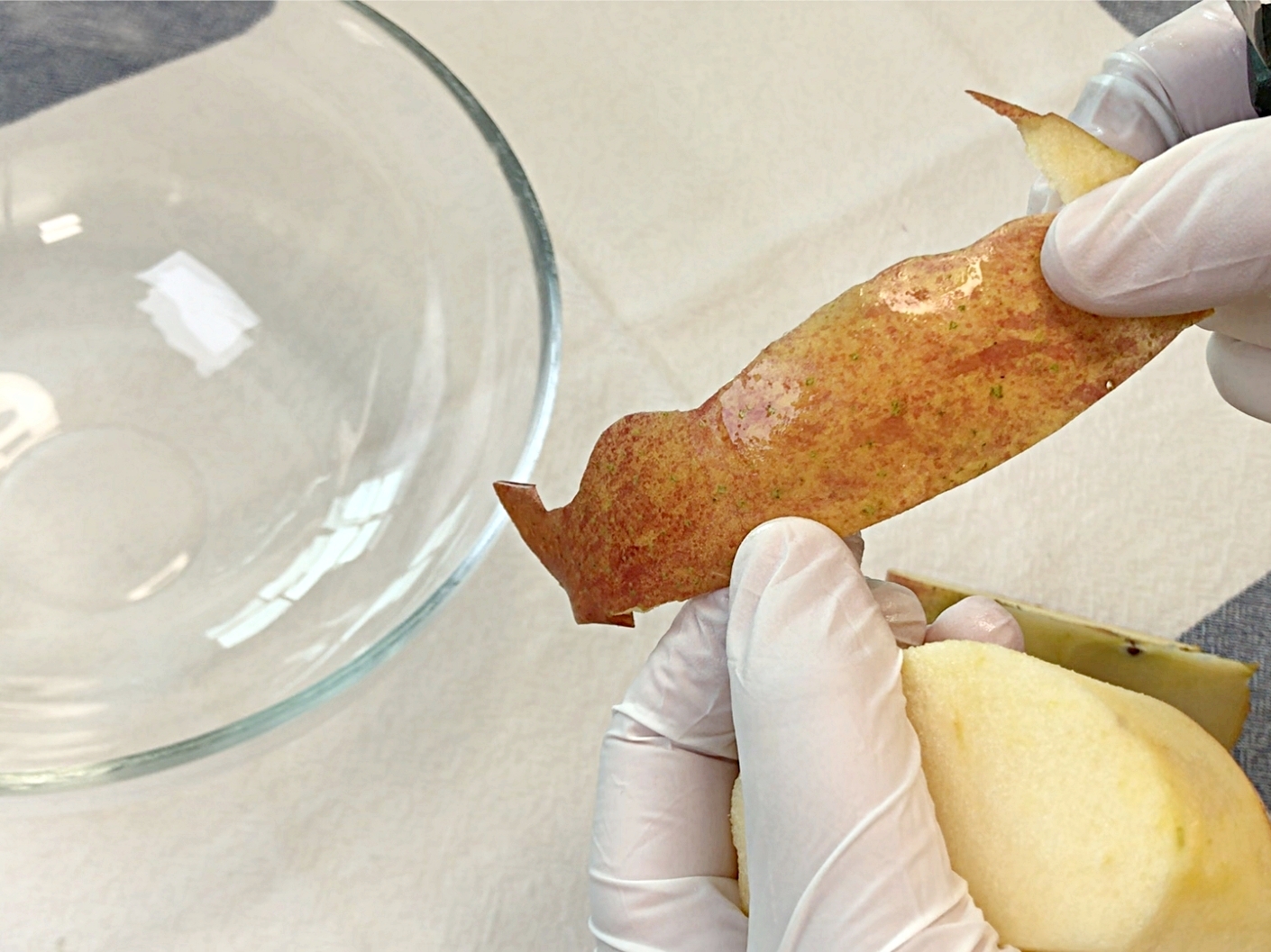 먼저 사과 껍질을 준비해주세요.