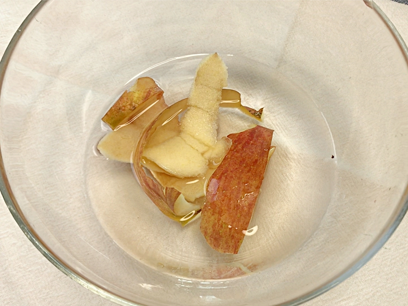 그사이 사과껍질이 충분히 우러난 소주를