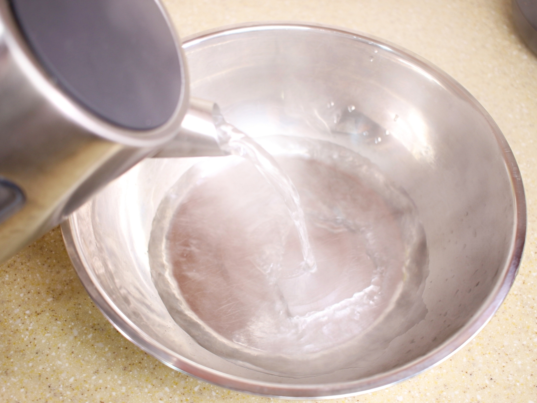 전기포트로 물을 끓여 넉넉한 용기에 부어줍니다.