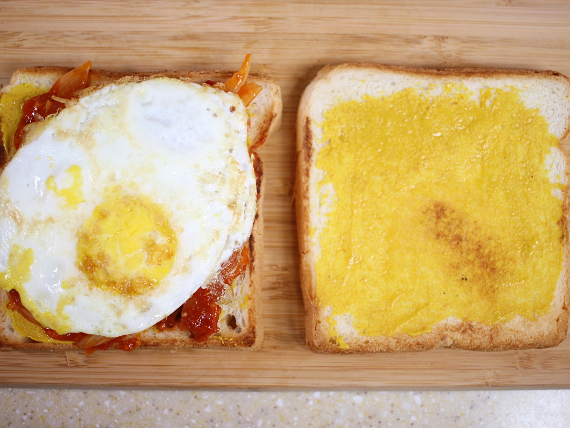 식빵 사이에 계란프라이 넣으면 끝이고요.
