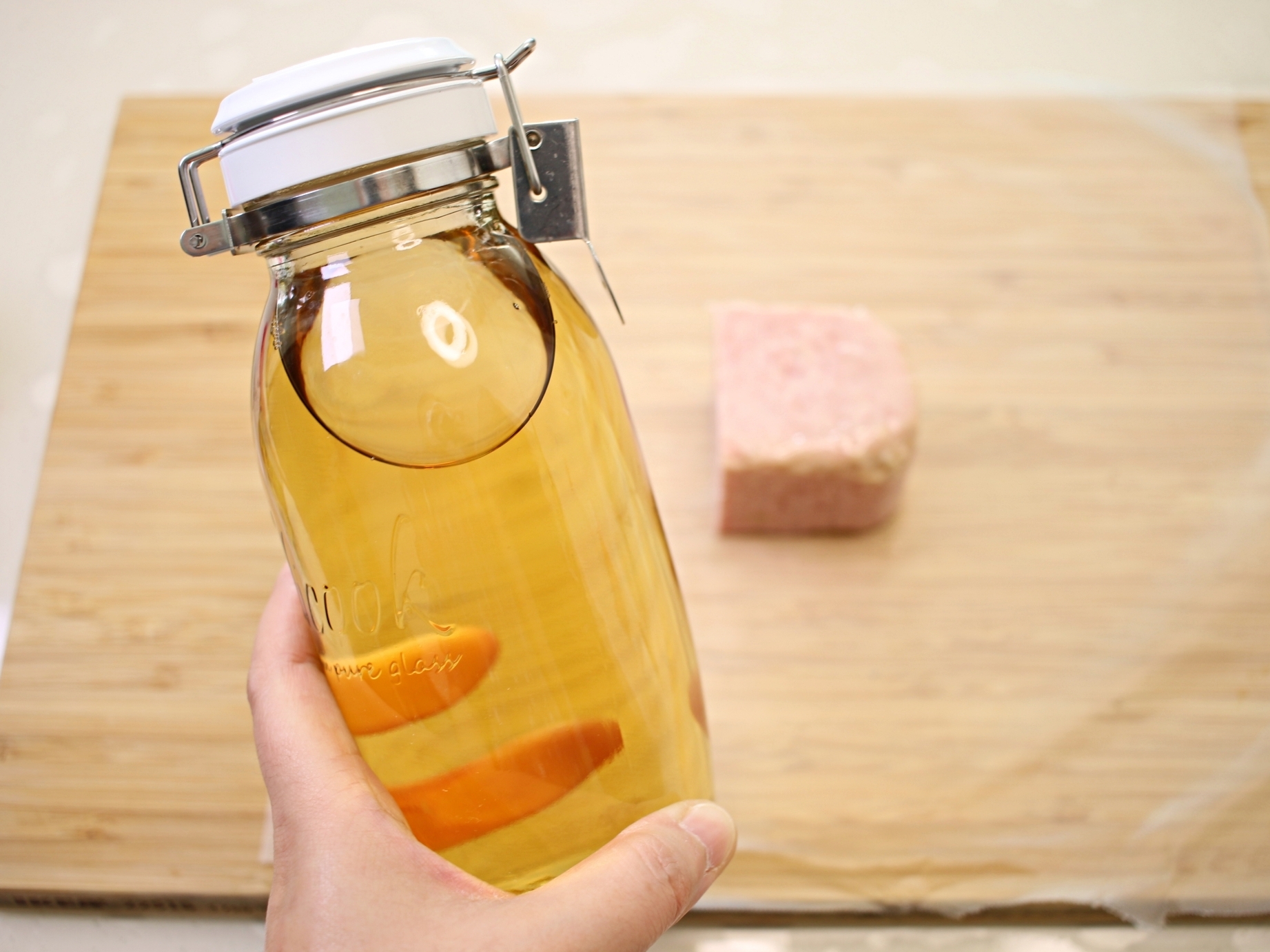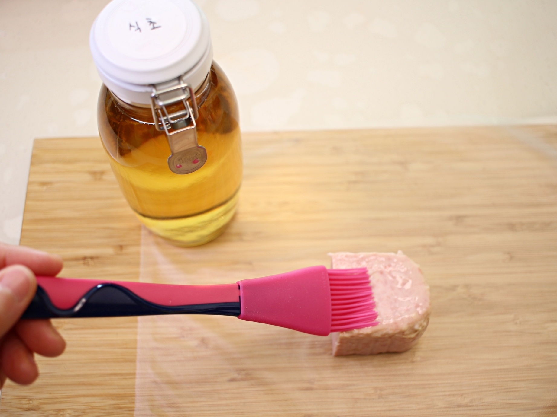남은 햄의 겉면에 식초를 얇게 발라서