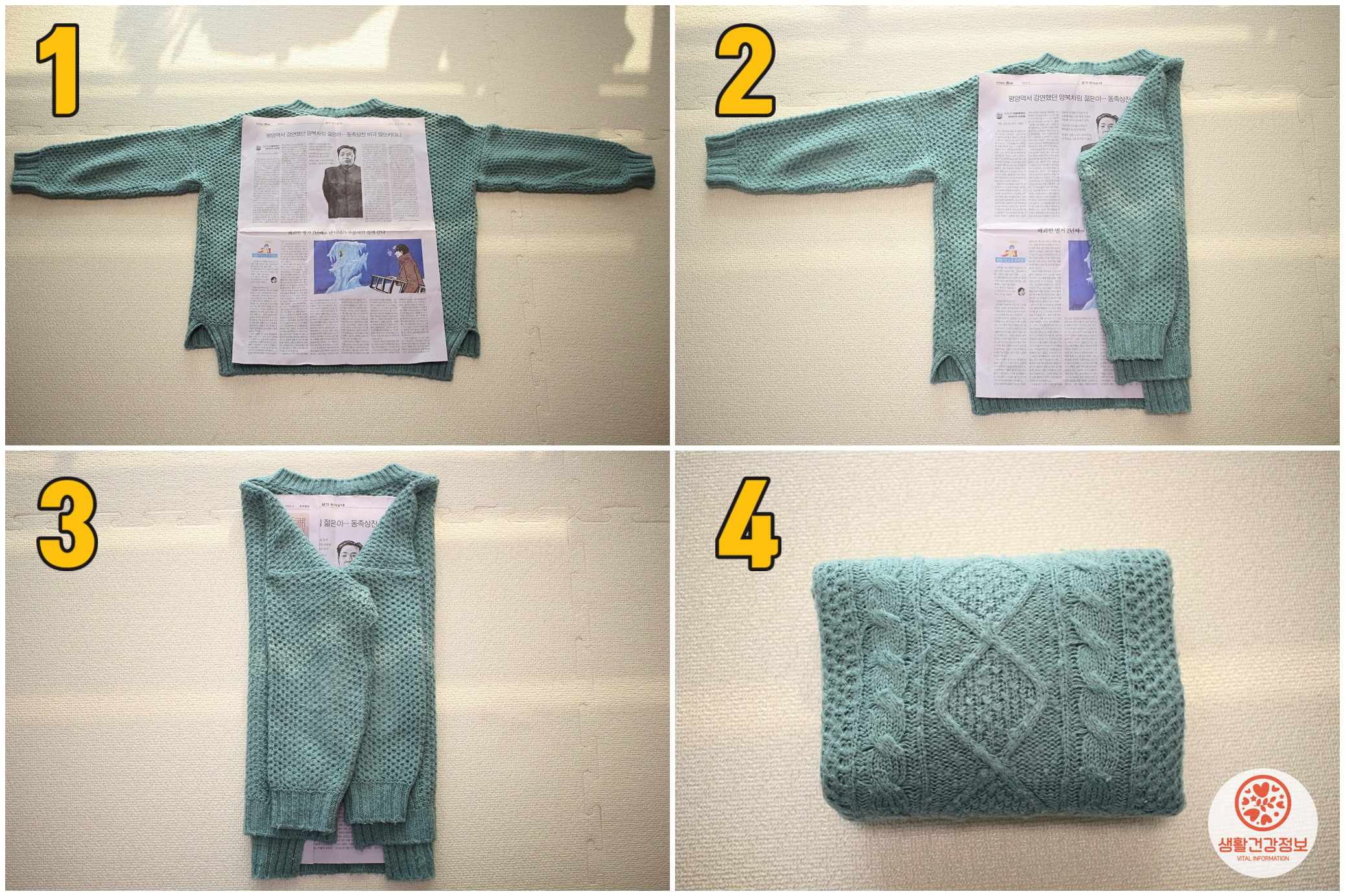 이때 니트 사이에 깨끗한 신문지나