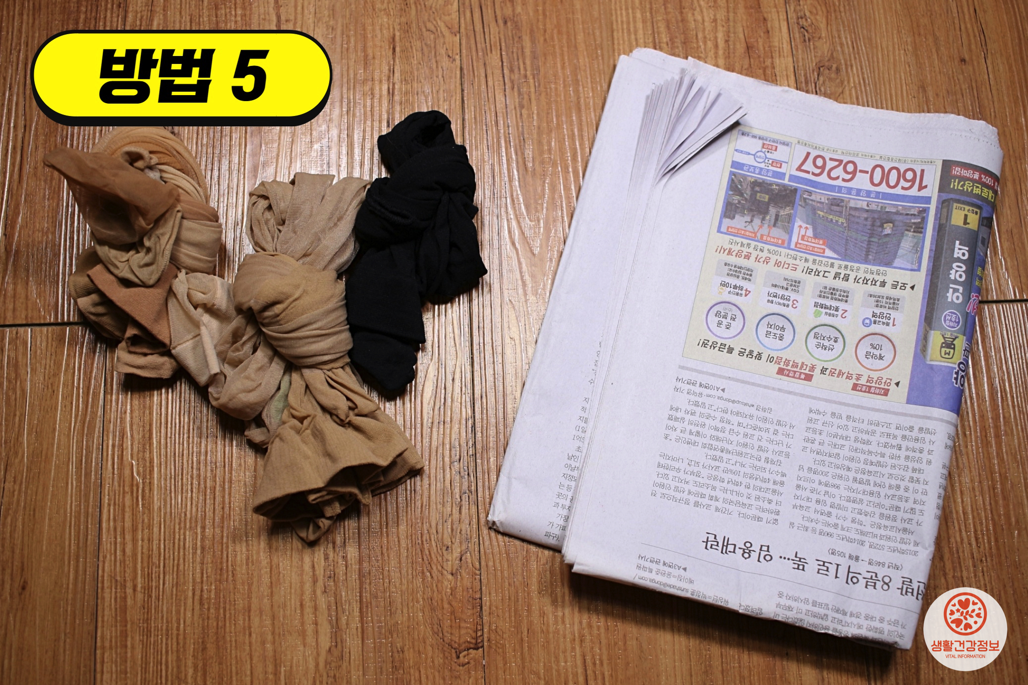 스타킹 속에 신문지를 구겨서 넣고
