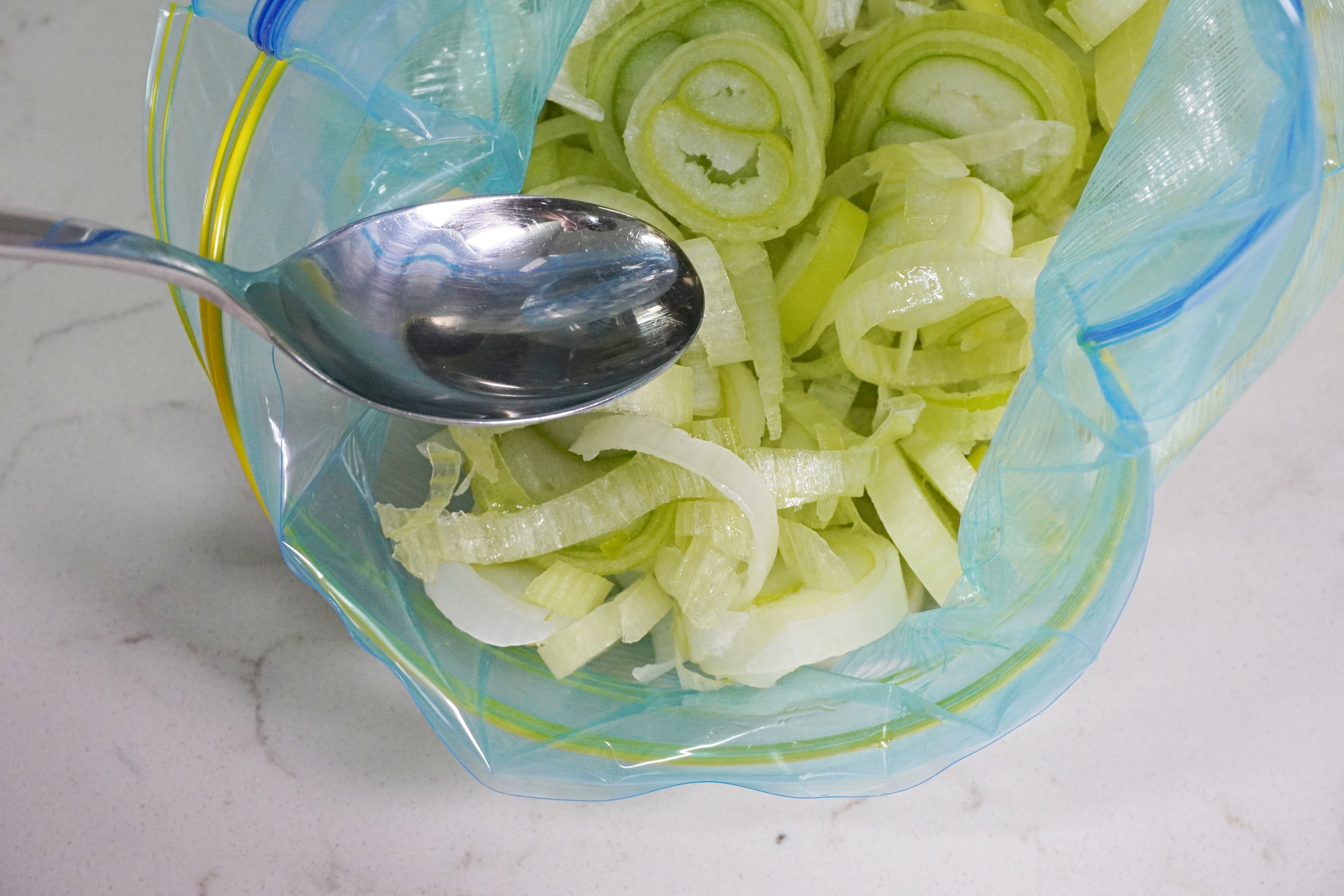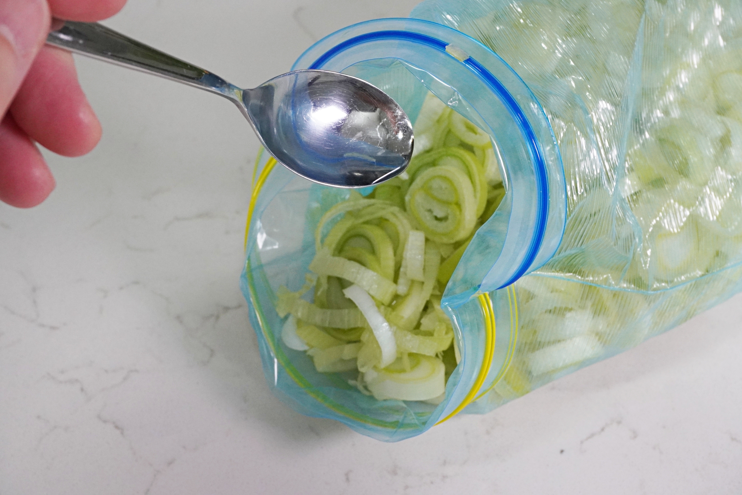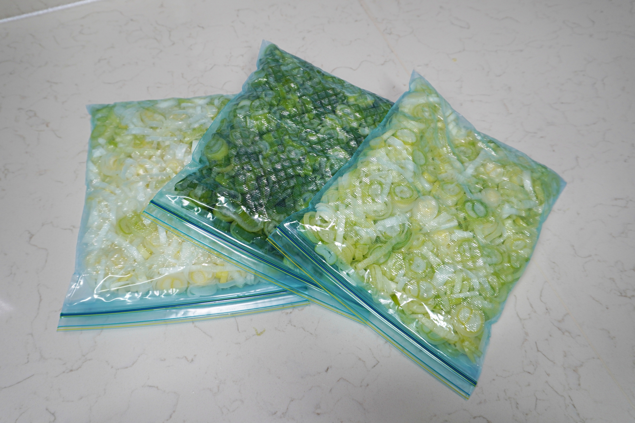손질한 대파를 냉동보관용 지퍼백에 담고
