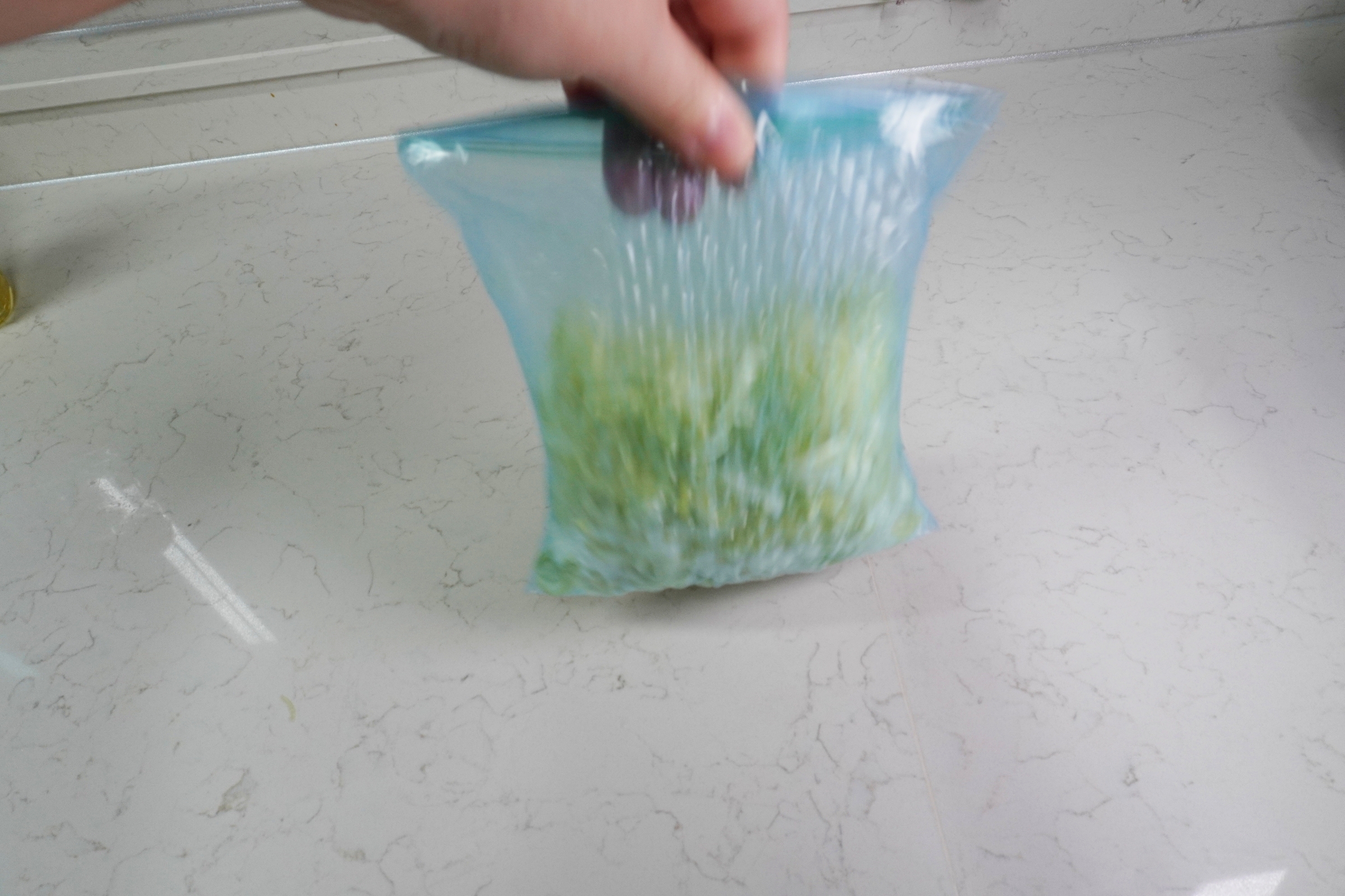 그리고 지퍼백 속 공기를 최대한 제거하고 밀봉하면