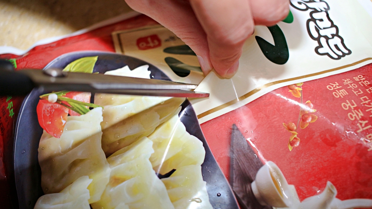 냉동만두 봉지에 가위로 구멍을 뚫었더니?!
