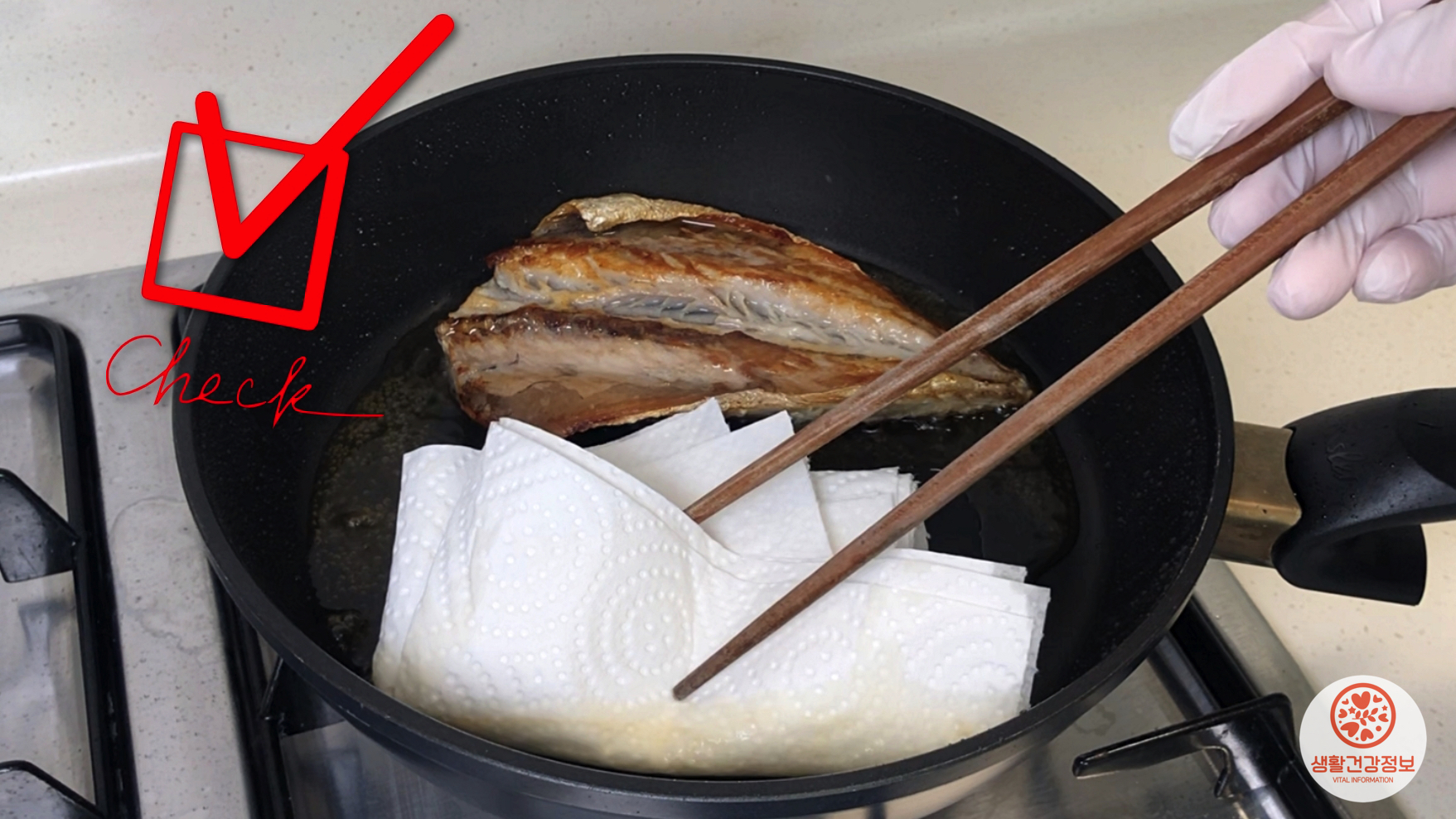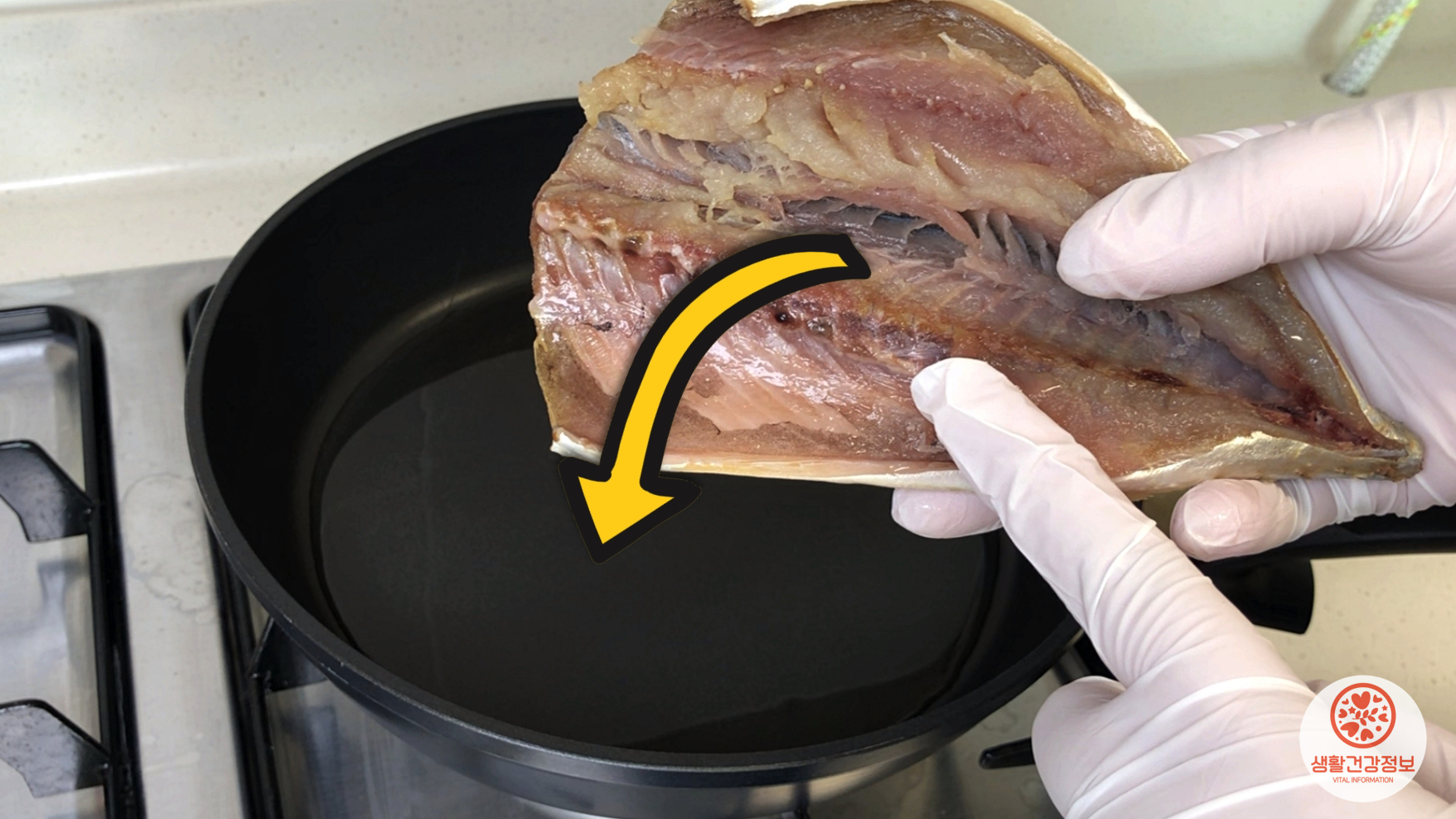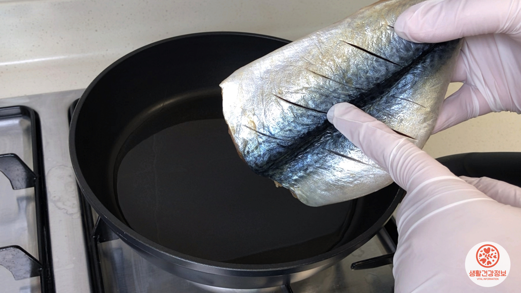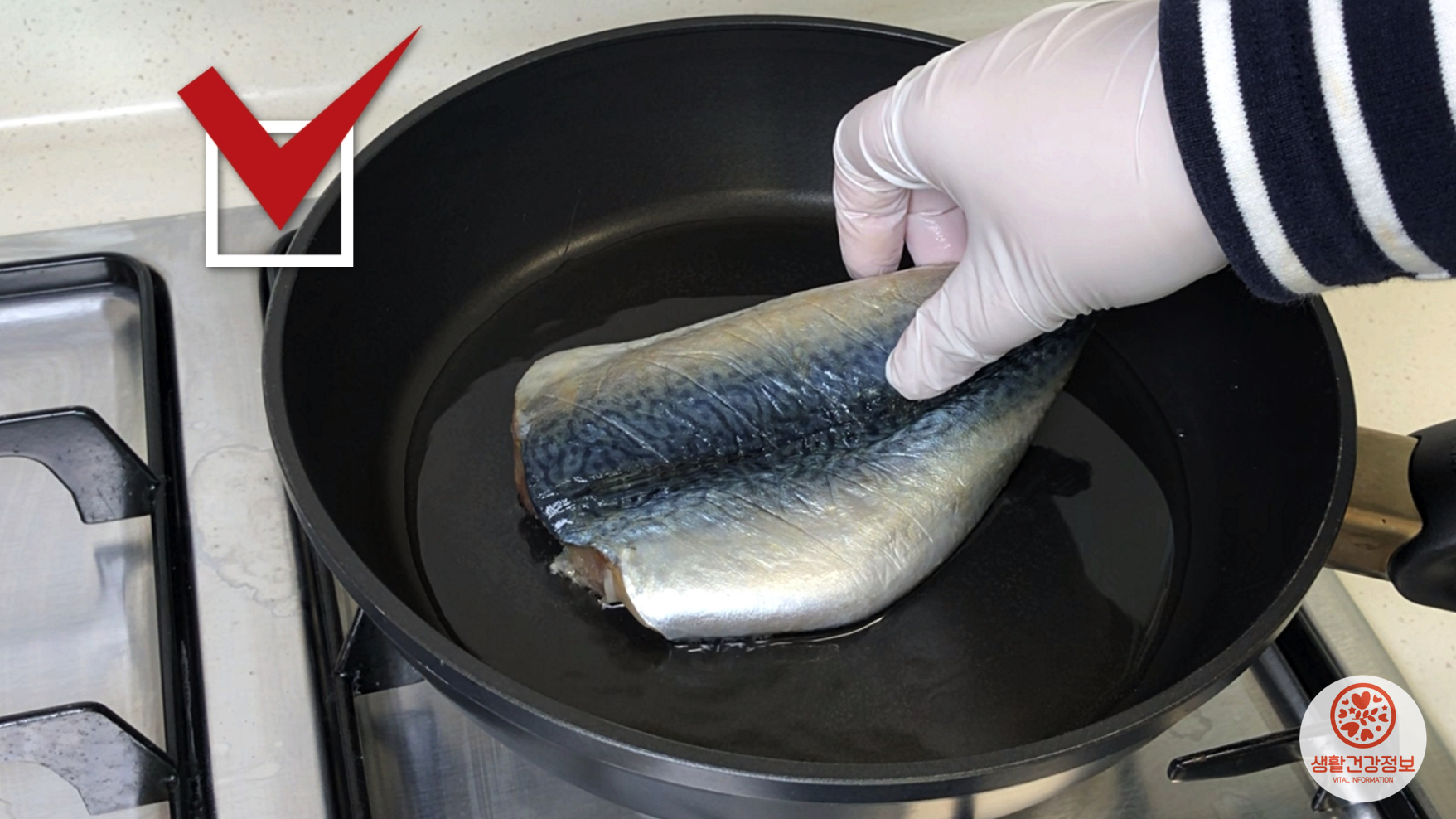 생선 안쪽부분이 프라이팬에 먼저 닿게