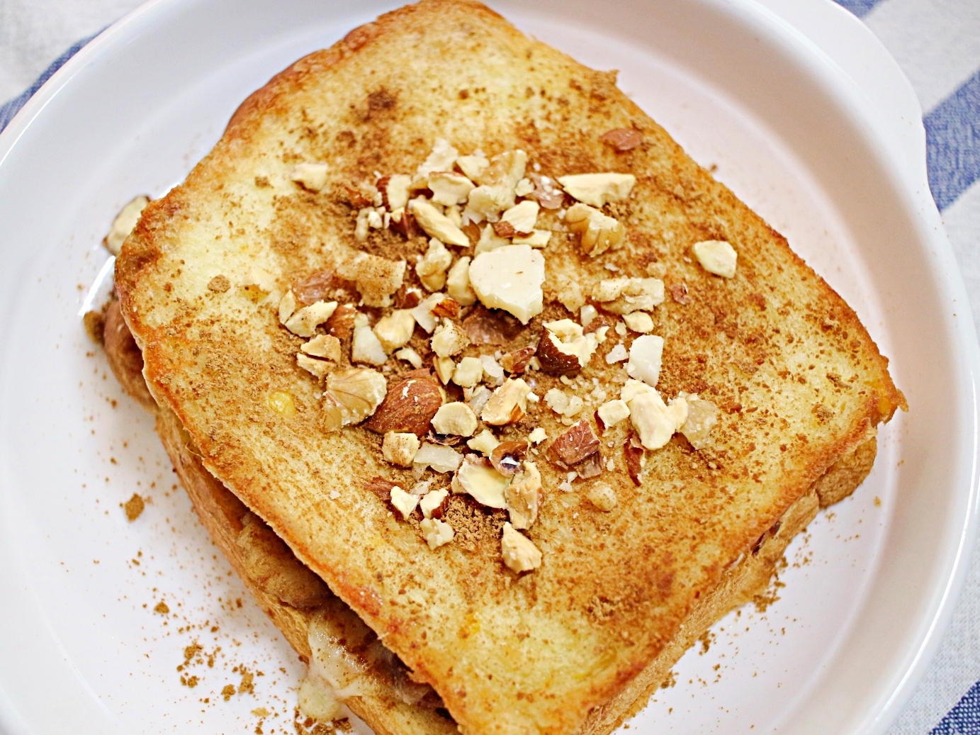 잘게 부순 견과류와 시나몬가루를 뿌려
