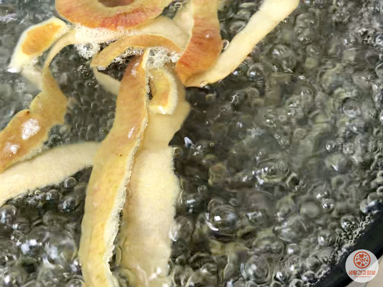 물이 끓으면 사과껍질을을 넣고 1-2분 더 끓여요.