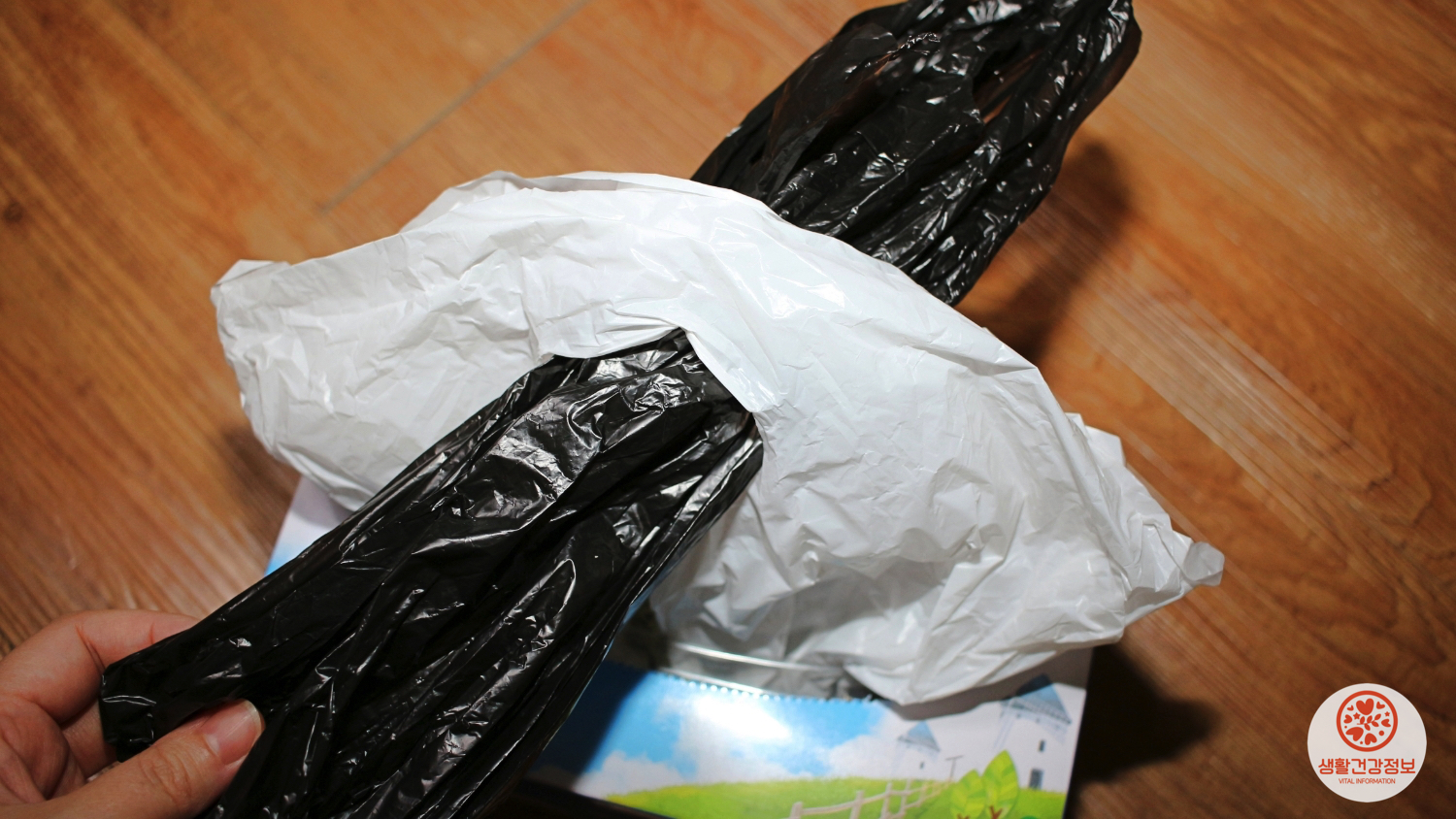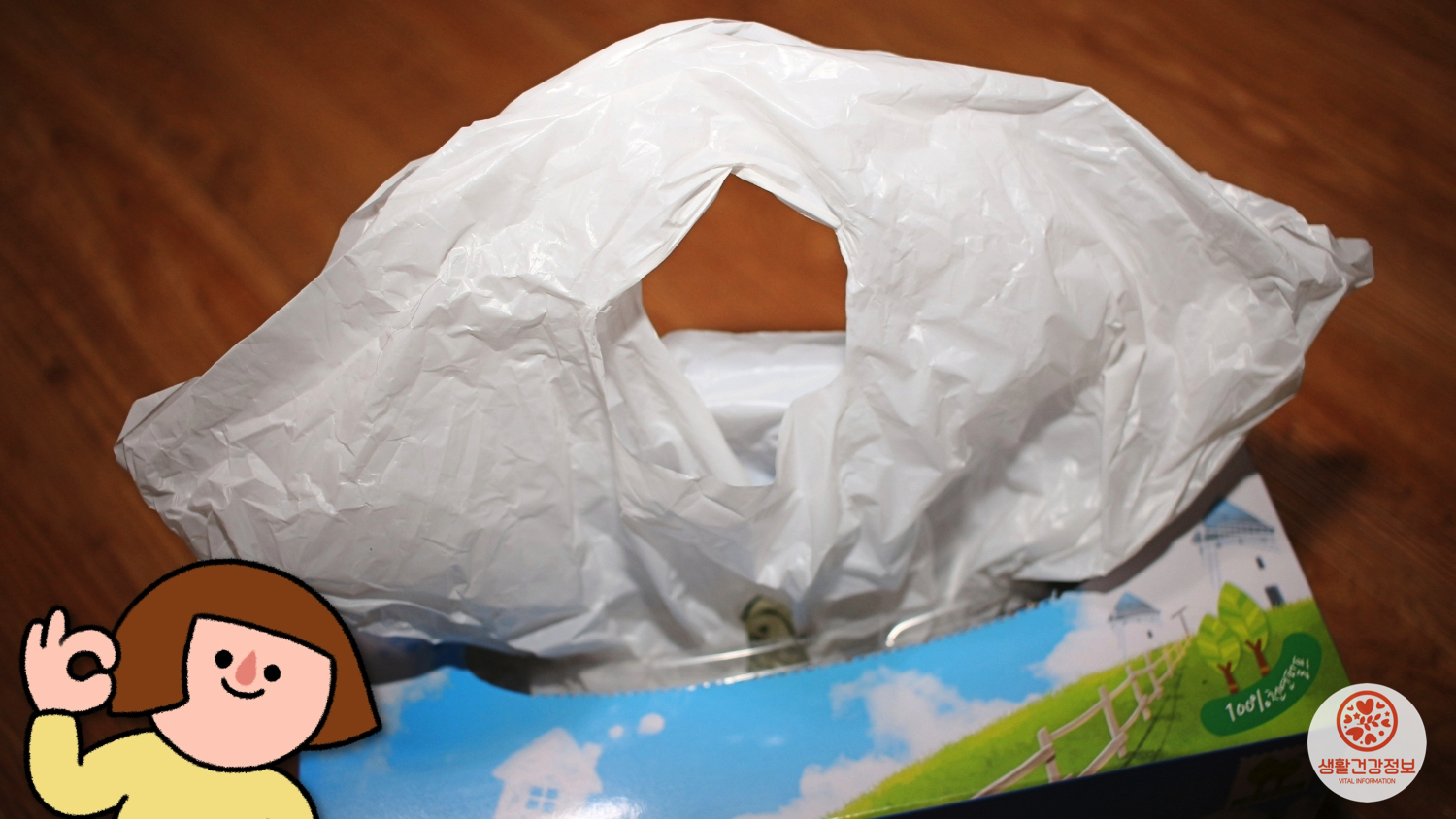 첫 번째 비닐은 휴지상자 안으로