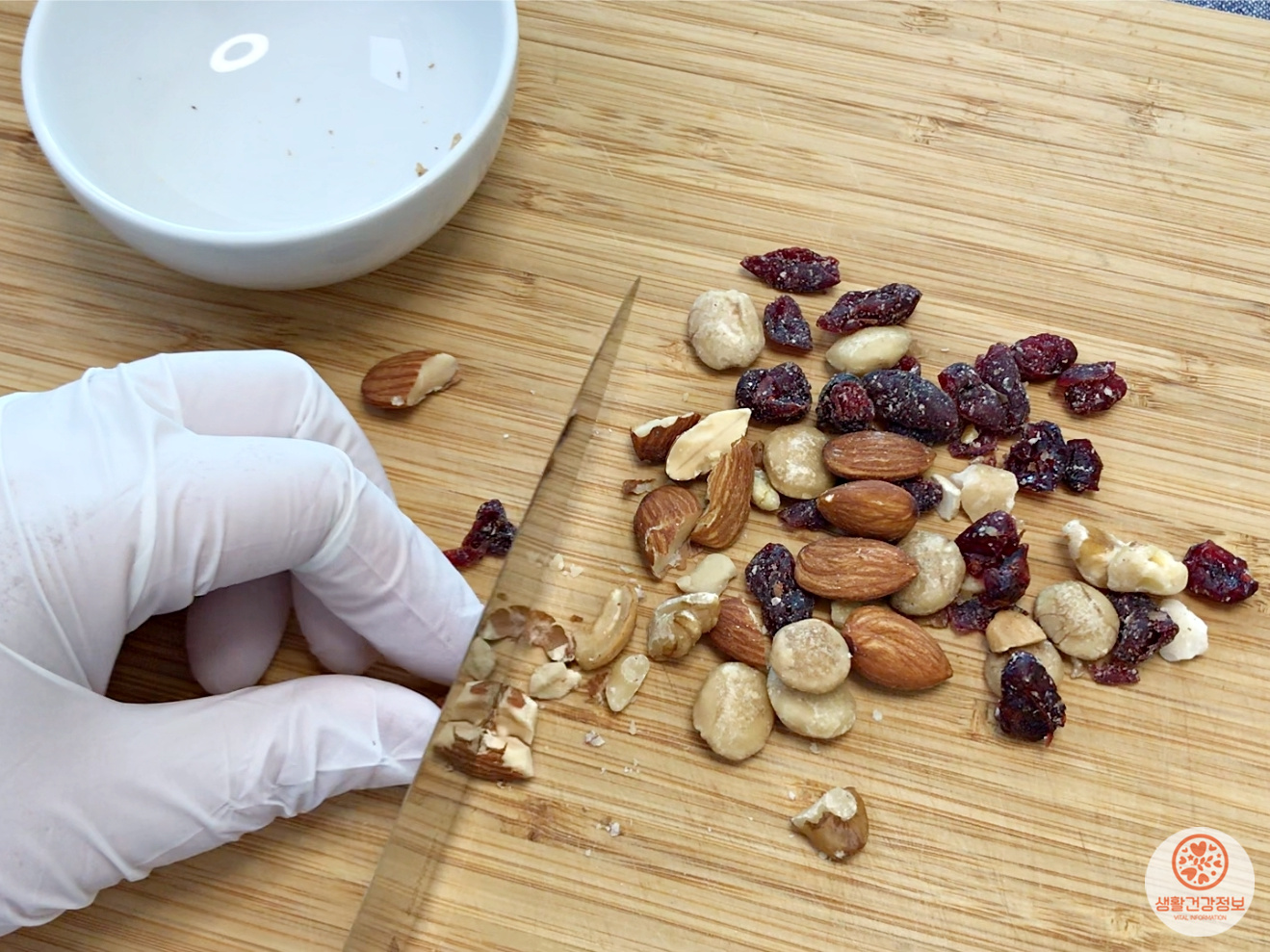 견과류는 종류 상관없이 준비해서 잘게 부수고,