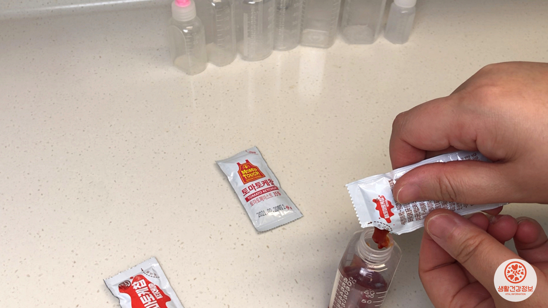 작은 사이즈의 약통에 케첩 3~4개만 모아도