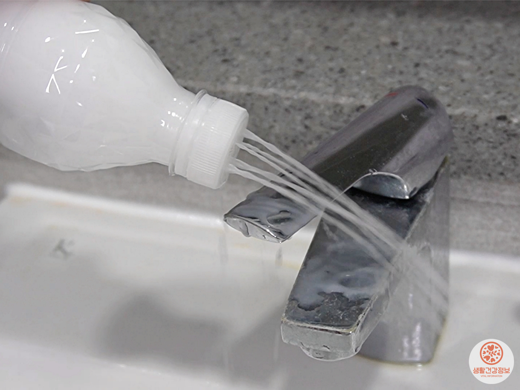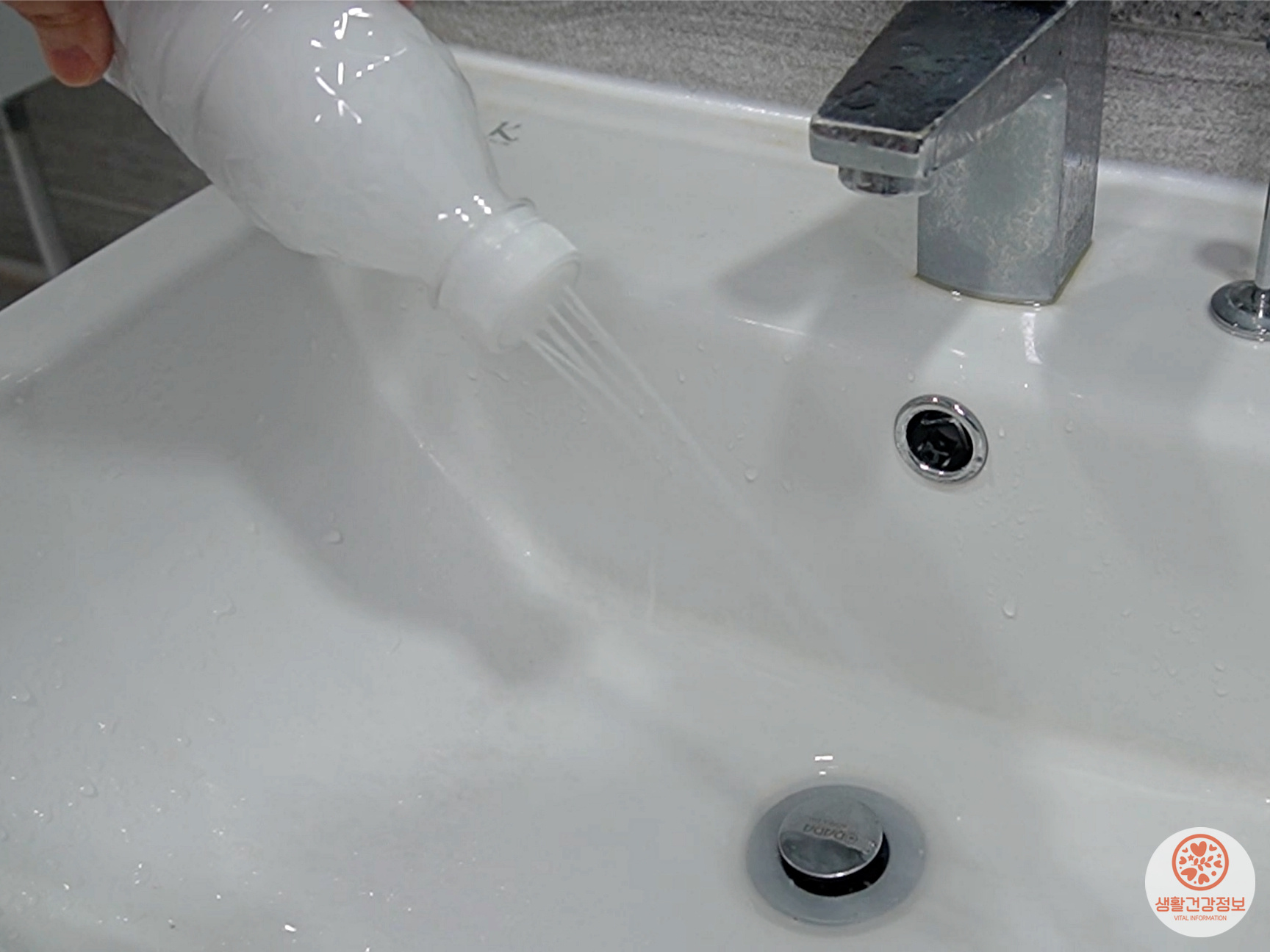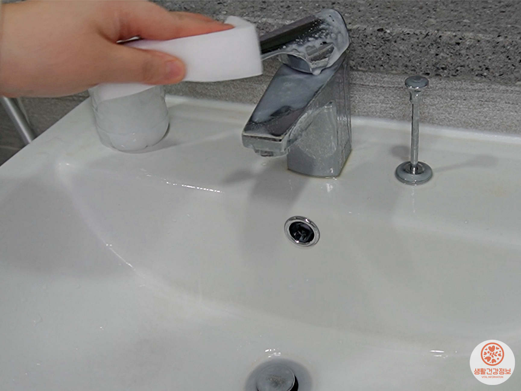 세면대에 치약물을 뿌리고 닦으면