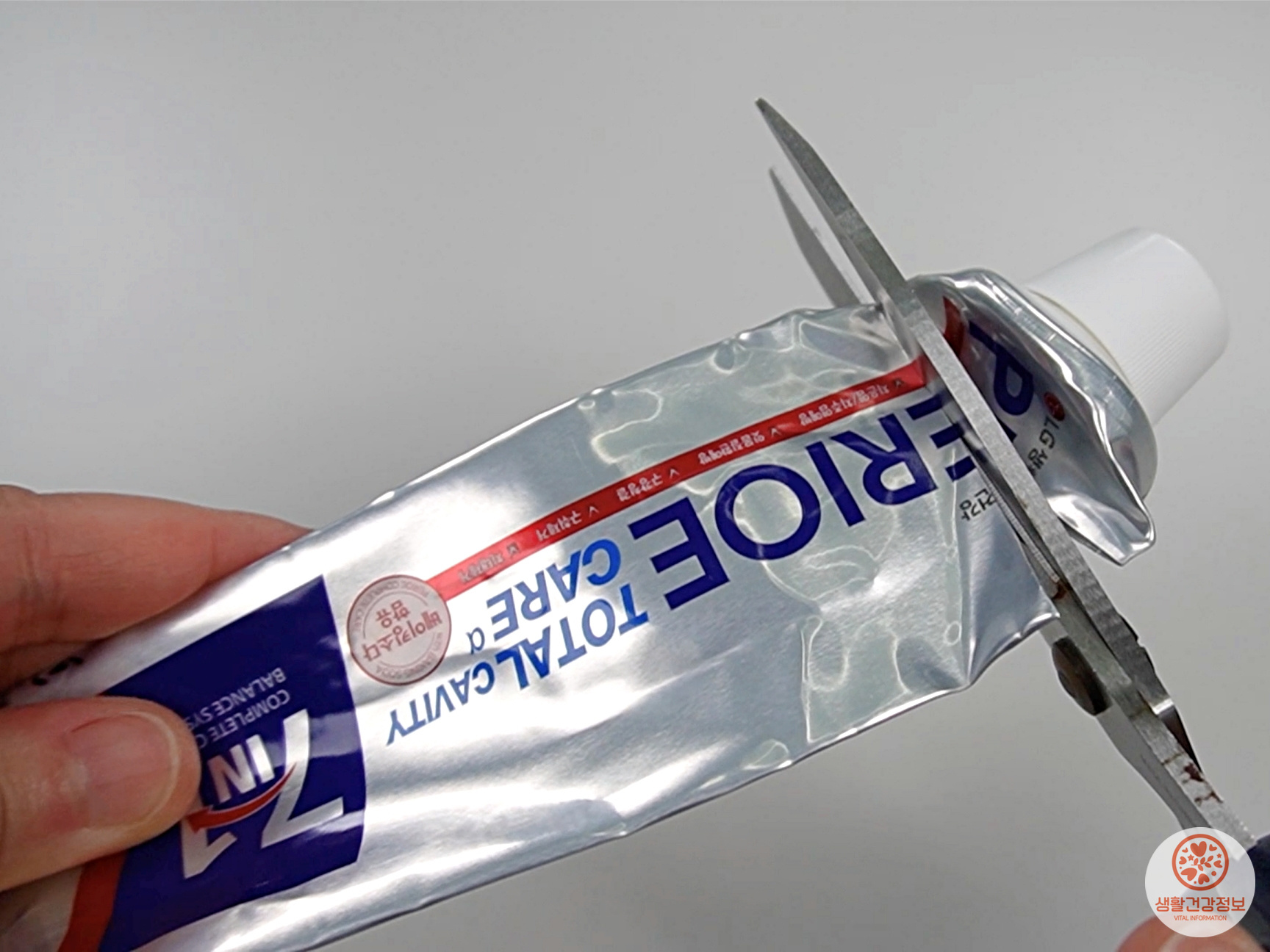 다 쓴 치약을 가위로 자르면
