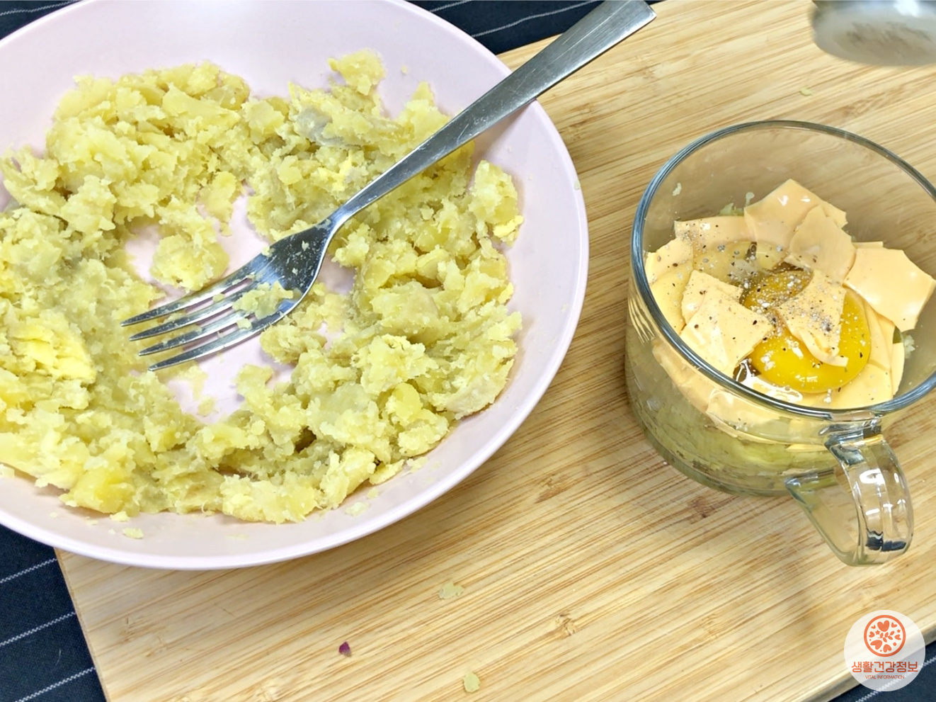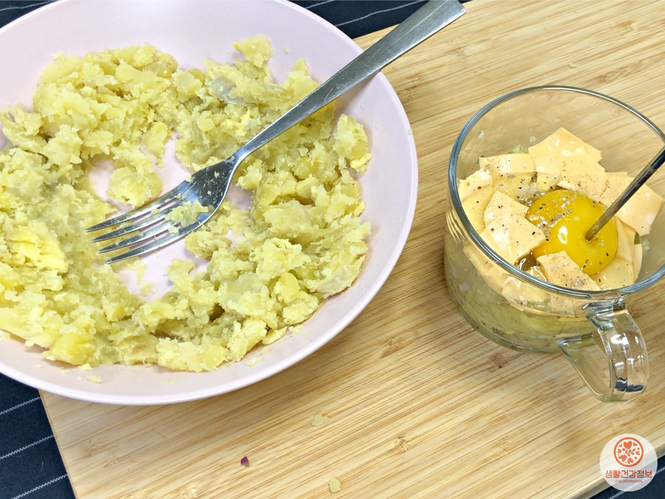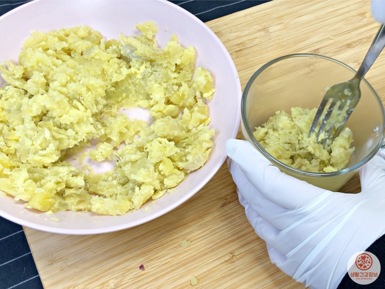 뜨거울 때 부드럽게 으깨주세요.
