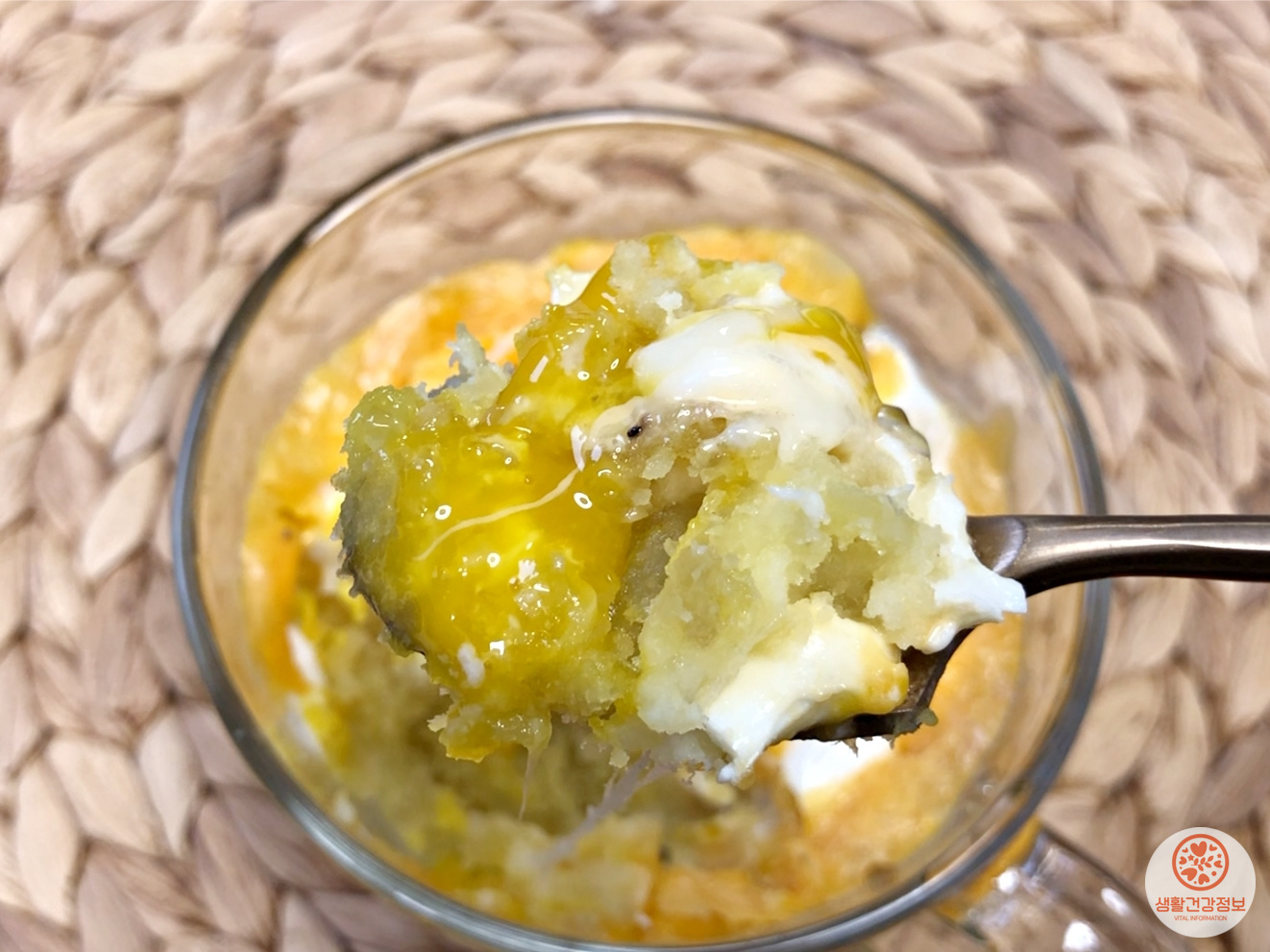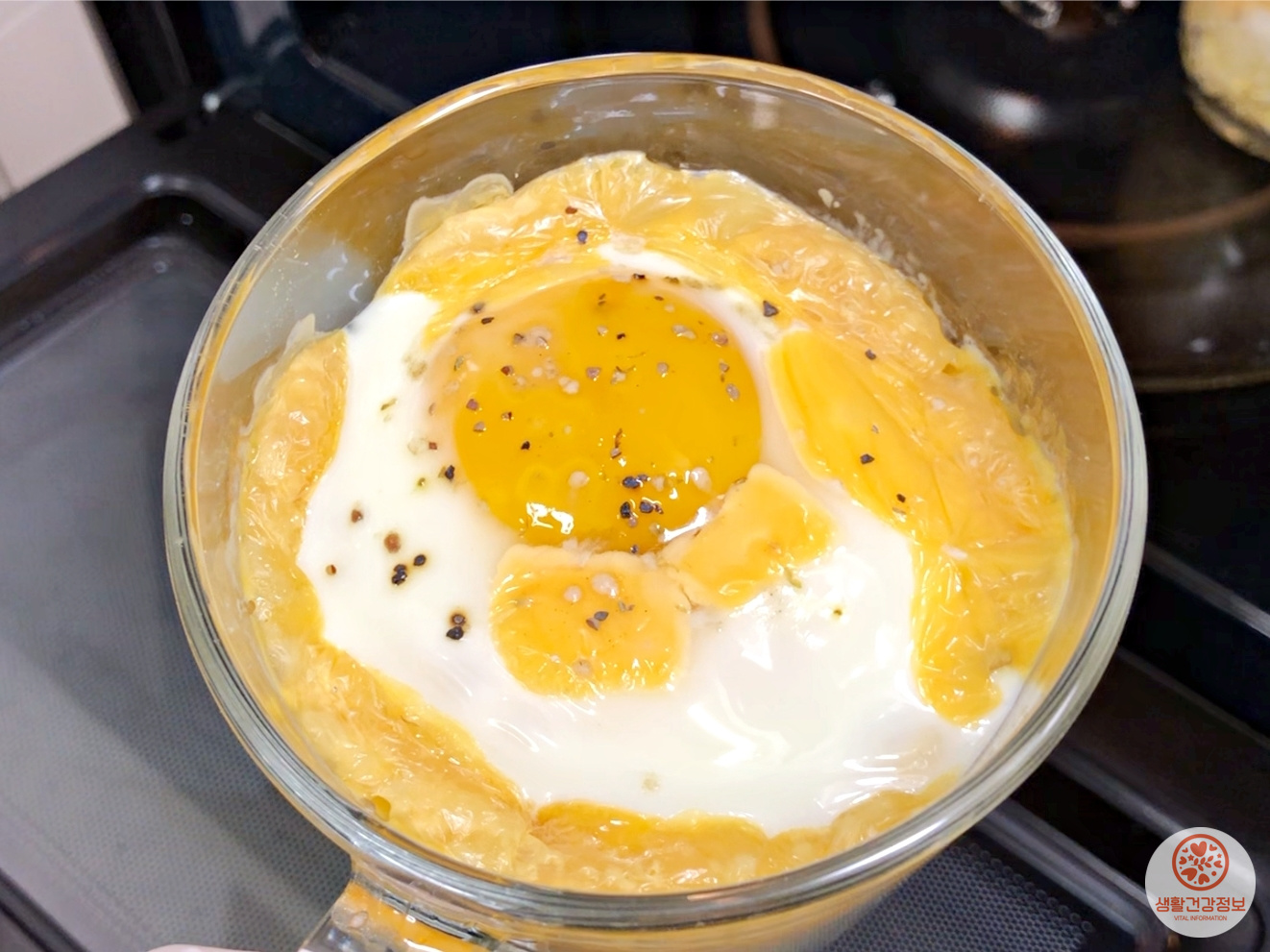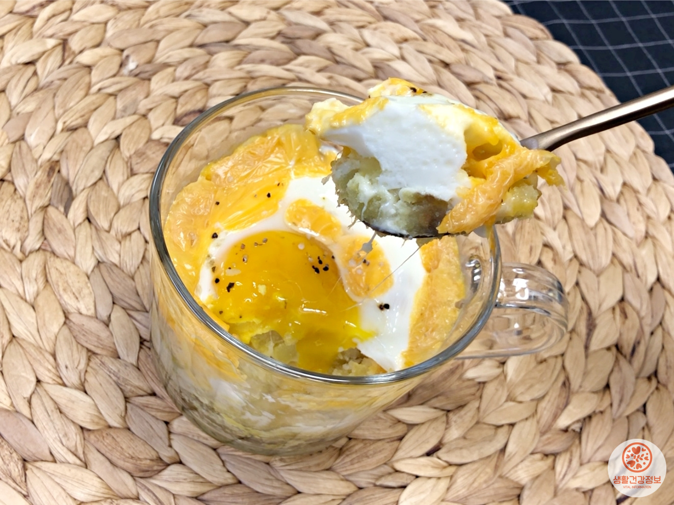 전자레인지로 데워서 계란이 익으면 완성이에요.