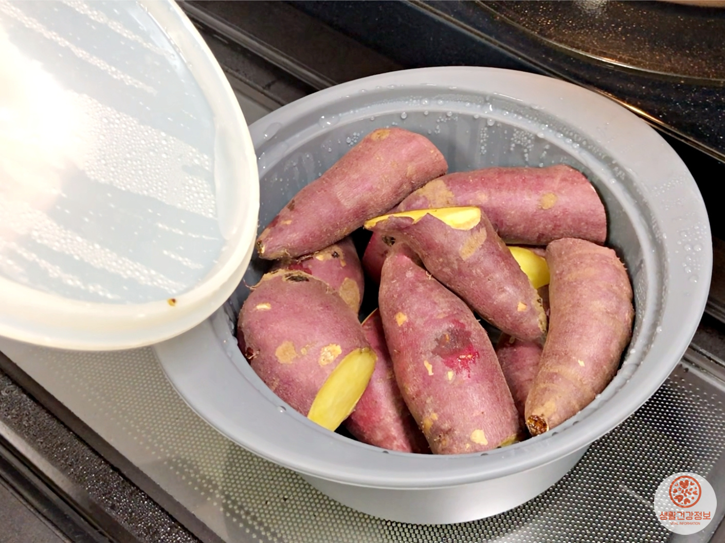 저는 전자레인지 전용 찜기에 고구마랑 물 약간 넣고